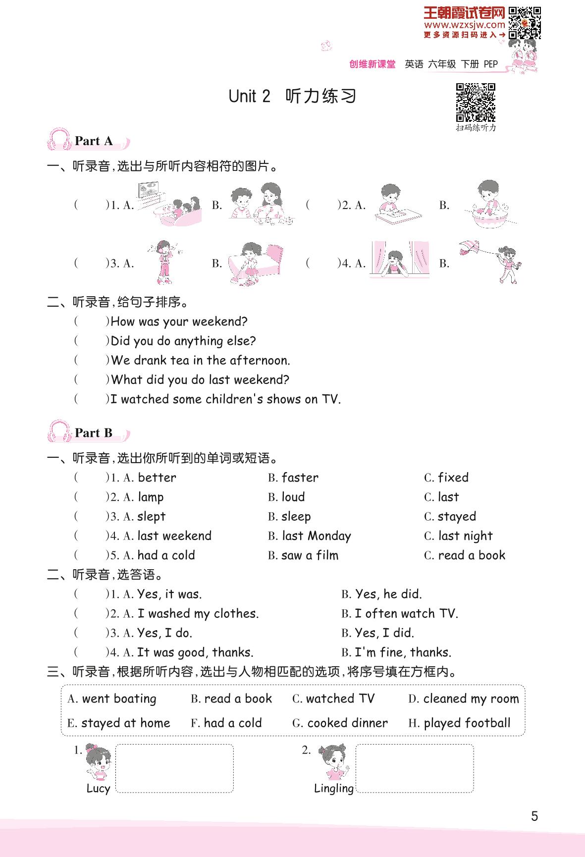 2023下册六年级英语人教PEP版 Unit 2 Last weekend —Part A、Part B 听力练习