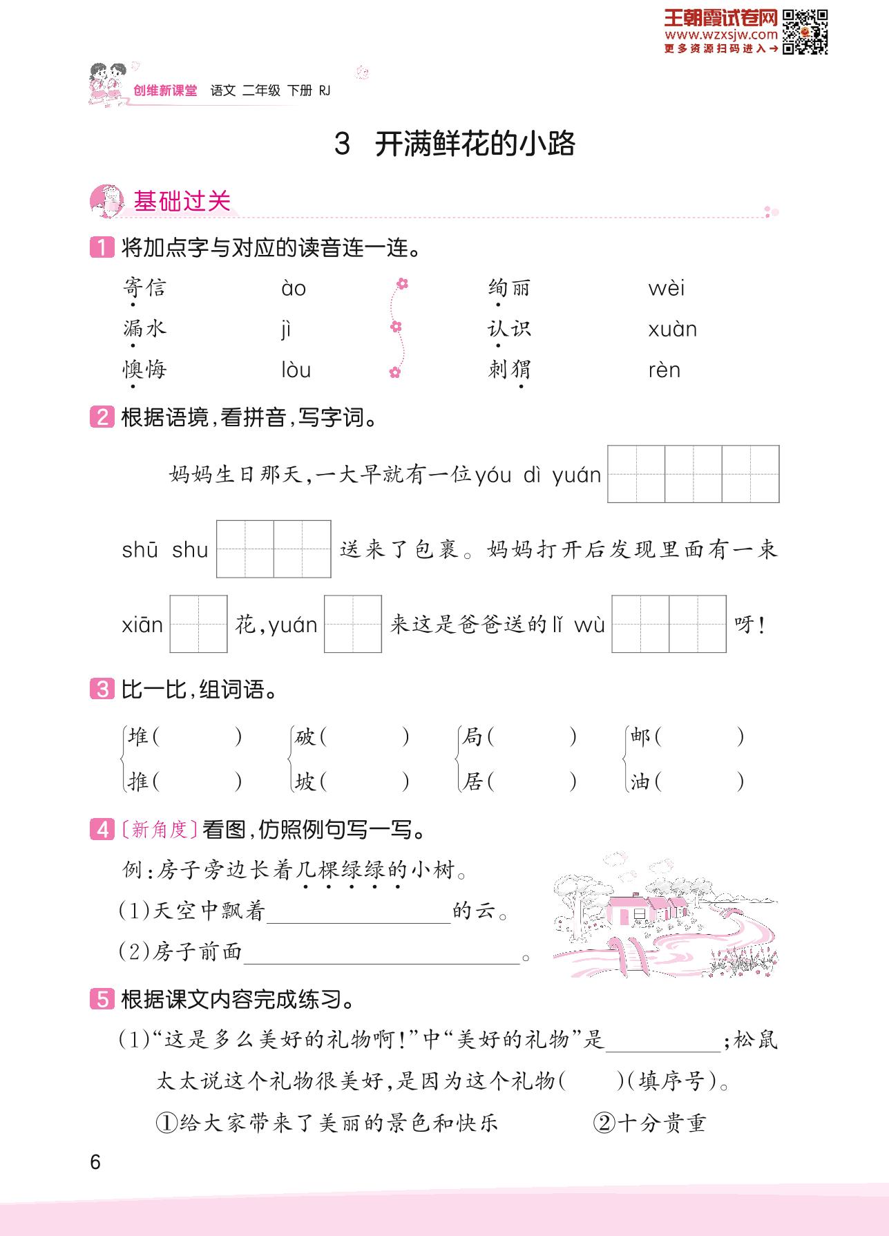 2023下册二年级语文人教版 第一单元 春天——3 开满鲜花的小路