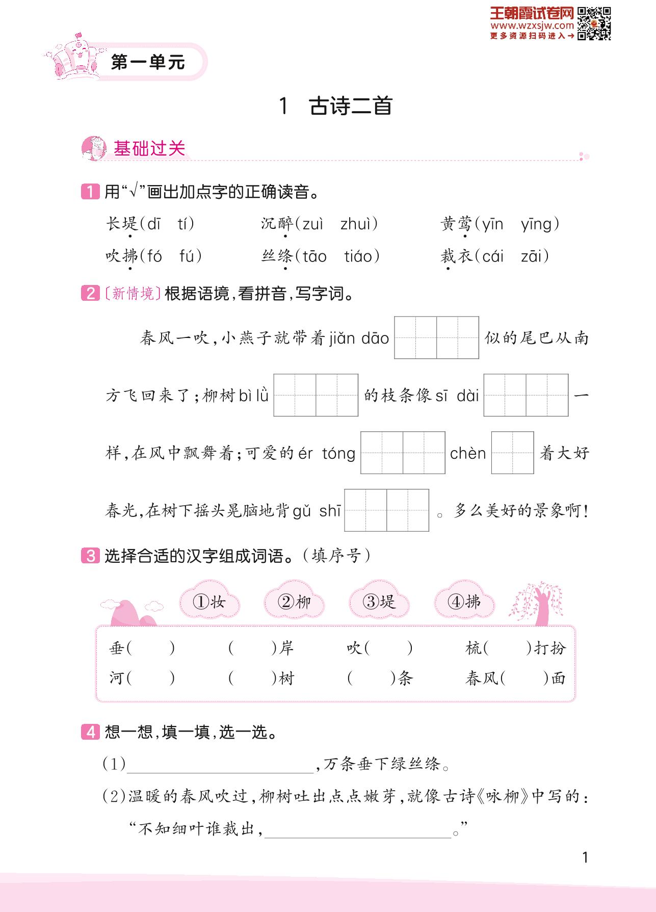 2023下册二年级语文人教版 第一单元 春天——1 古诗二首