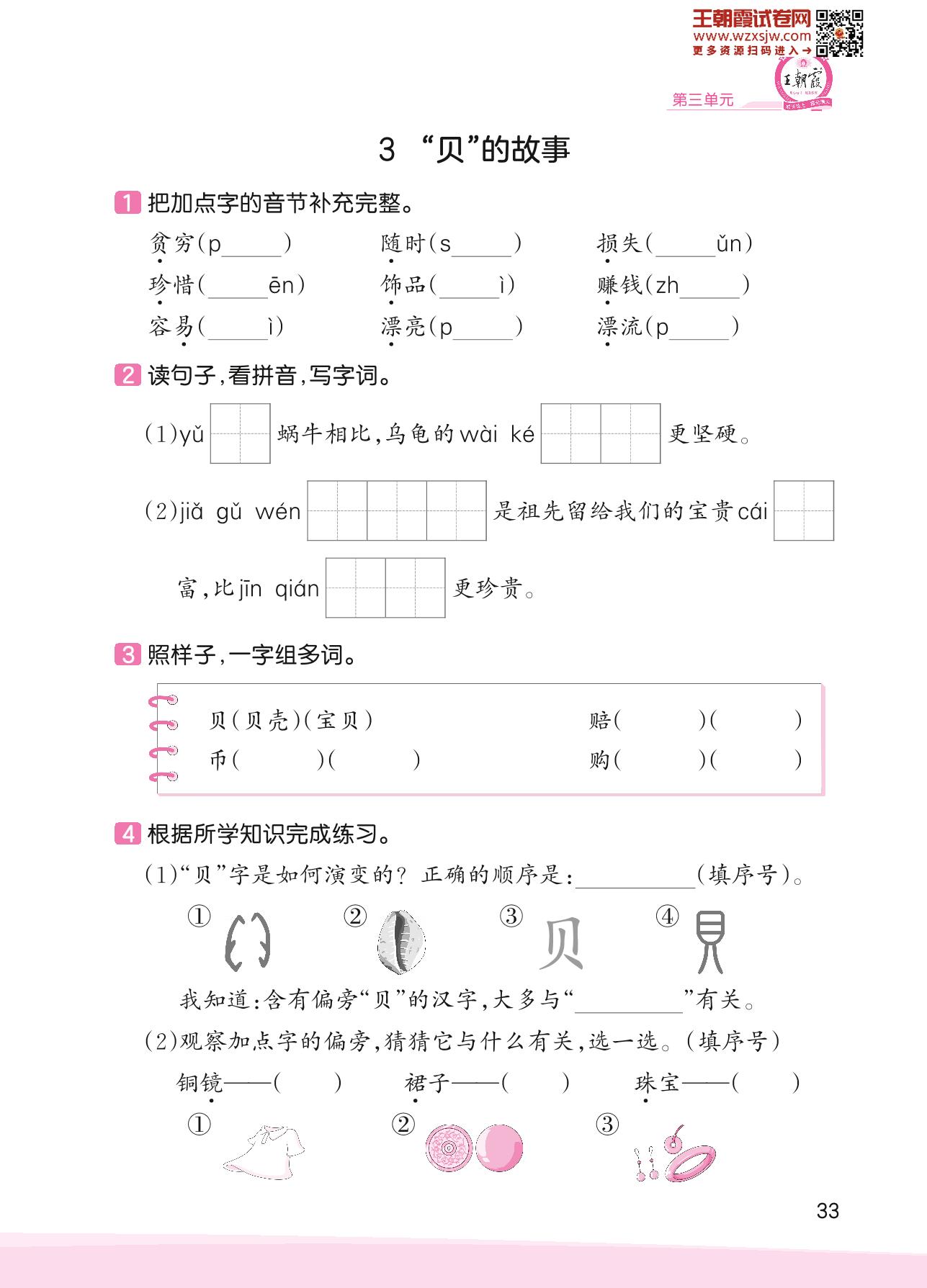 2023下册二年级语文人教版 第三单元 传统文化——3 “贝”的故事