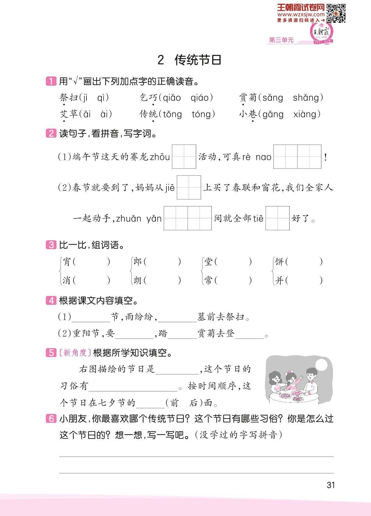 2023下册二年级语文人教版 第三单元 传统文化——2 传统节日