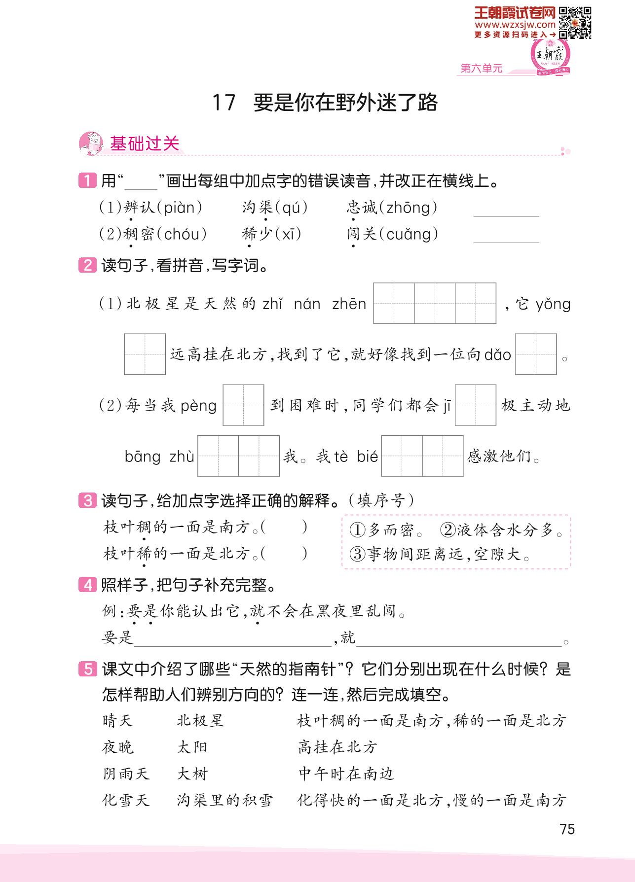 2023下册二年级语文人教版 第六单元 大自然的秘密——17 要是你在野外迷了路
