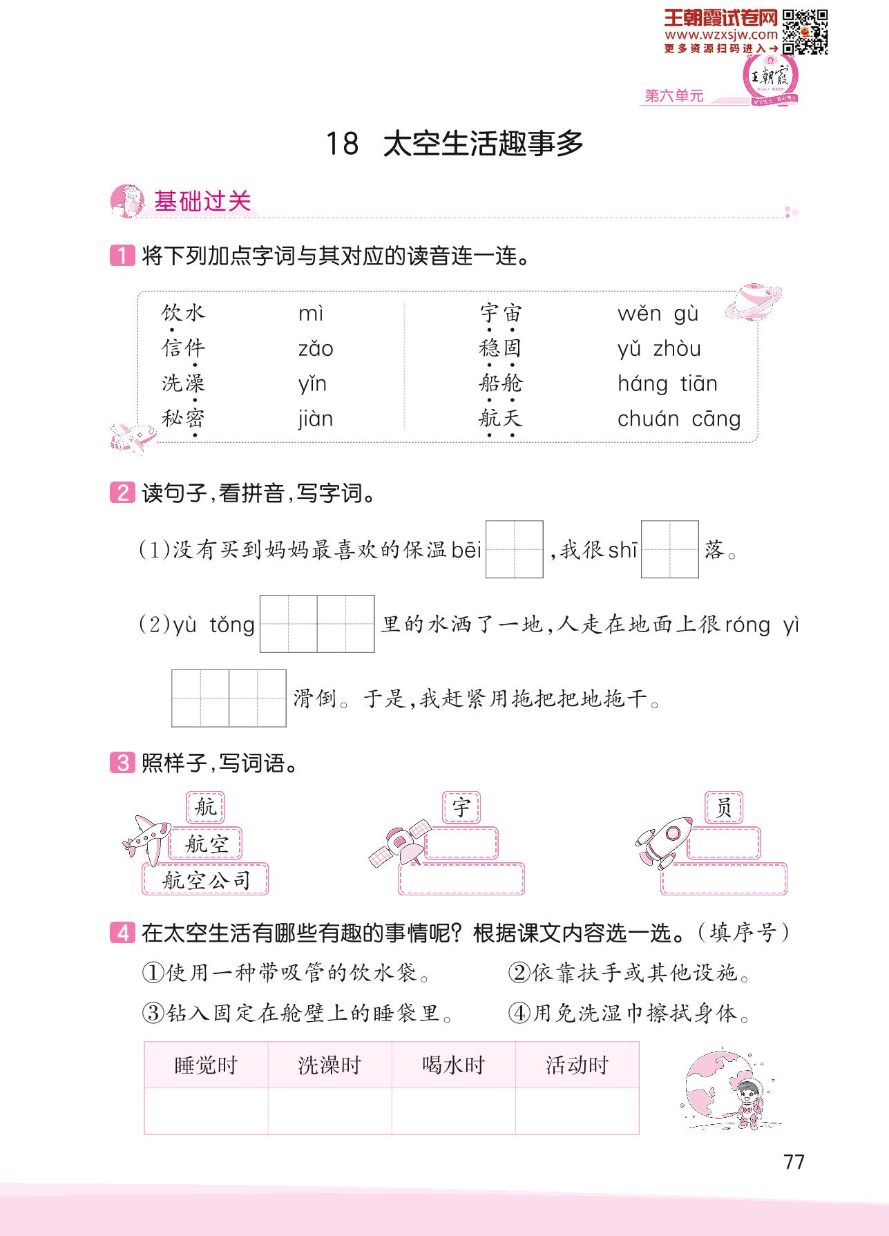2023下册二年级语文人教版 第六单元 大自然的秘密——18 太空生活趣事多