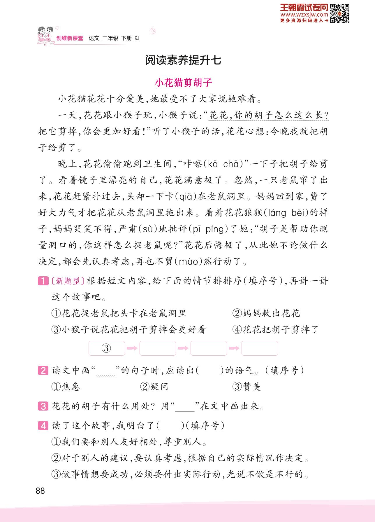 2023下册二年级语文人教版 第七单元 改变——阅读素养提升七