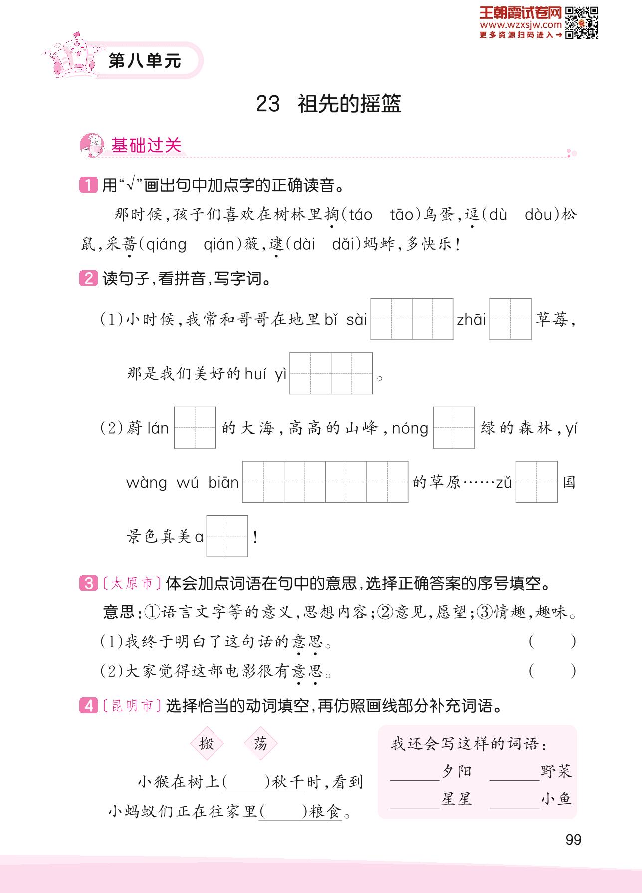 2023下册二年级语文人教版 第八单元 世界之初——23 祖先的摇篮