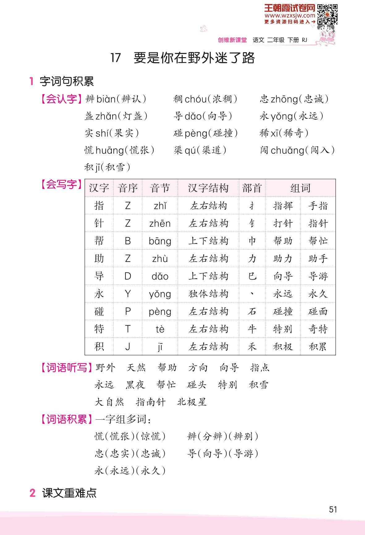 2023下册二年级语文人教版 助学手册 第六单元——17 要是你在野外迷了路