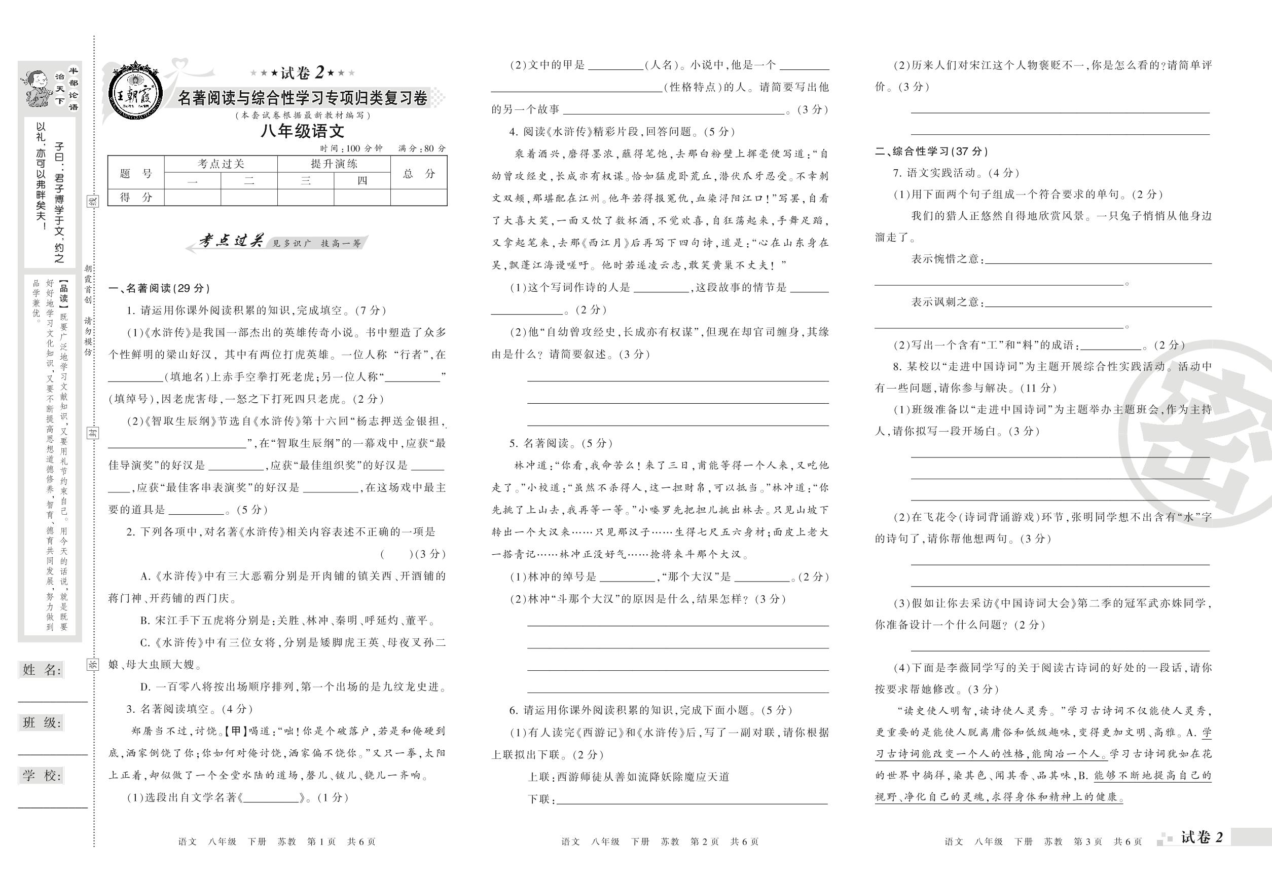 王朝霞期末专项卷——名著阅读与综合性学习专项归类复习卷八年级下册语文(苏教版)_R210802191714【2】