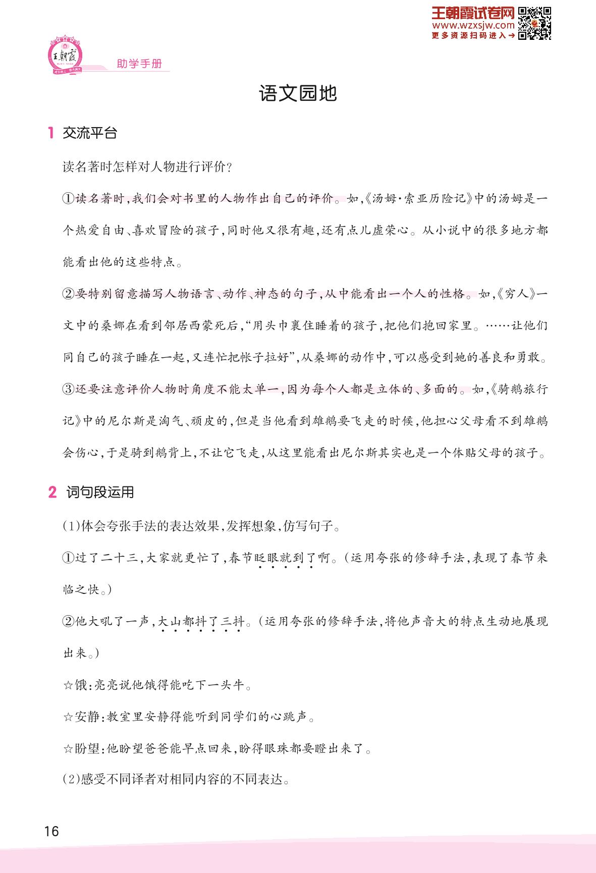 2023下册六年级语文人教版 助学手册 第二单元——语文园地
