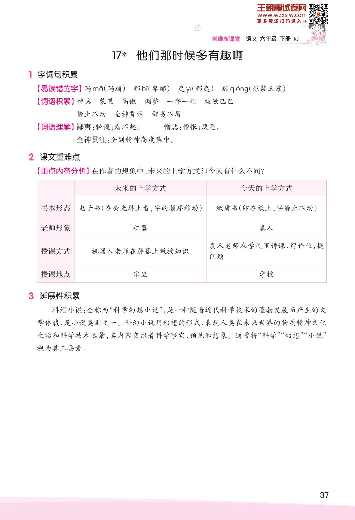 2023下册六年级语文人教版 助学手册 第五单元——17 他们那时候多有趣啊