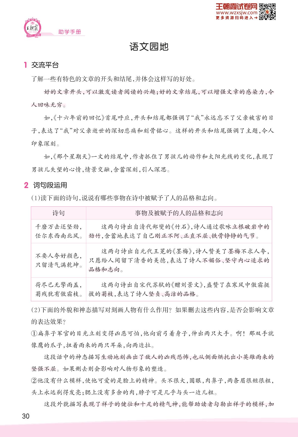 2023下册六年级语文人教版 助学手册 第四单元——语文园地