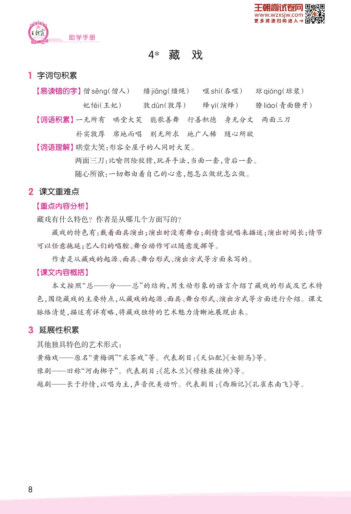 2023下册六年级语文人教版 助学手册 第一单元——4 藏戏