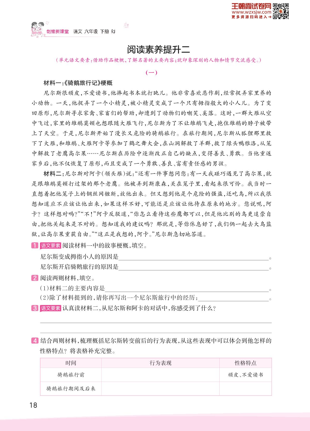 2023下册六年级语文人教版 第二单元 外国文学名著——阅读素养提升二