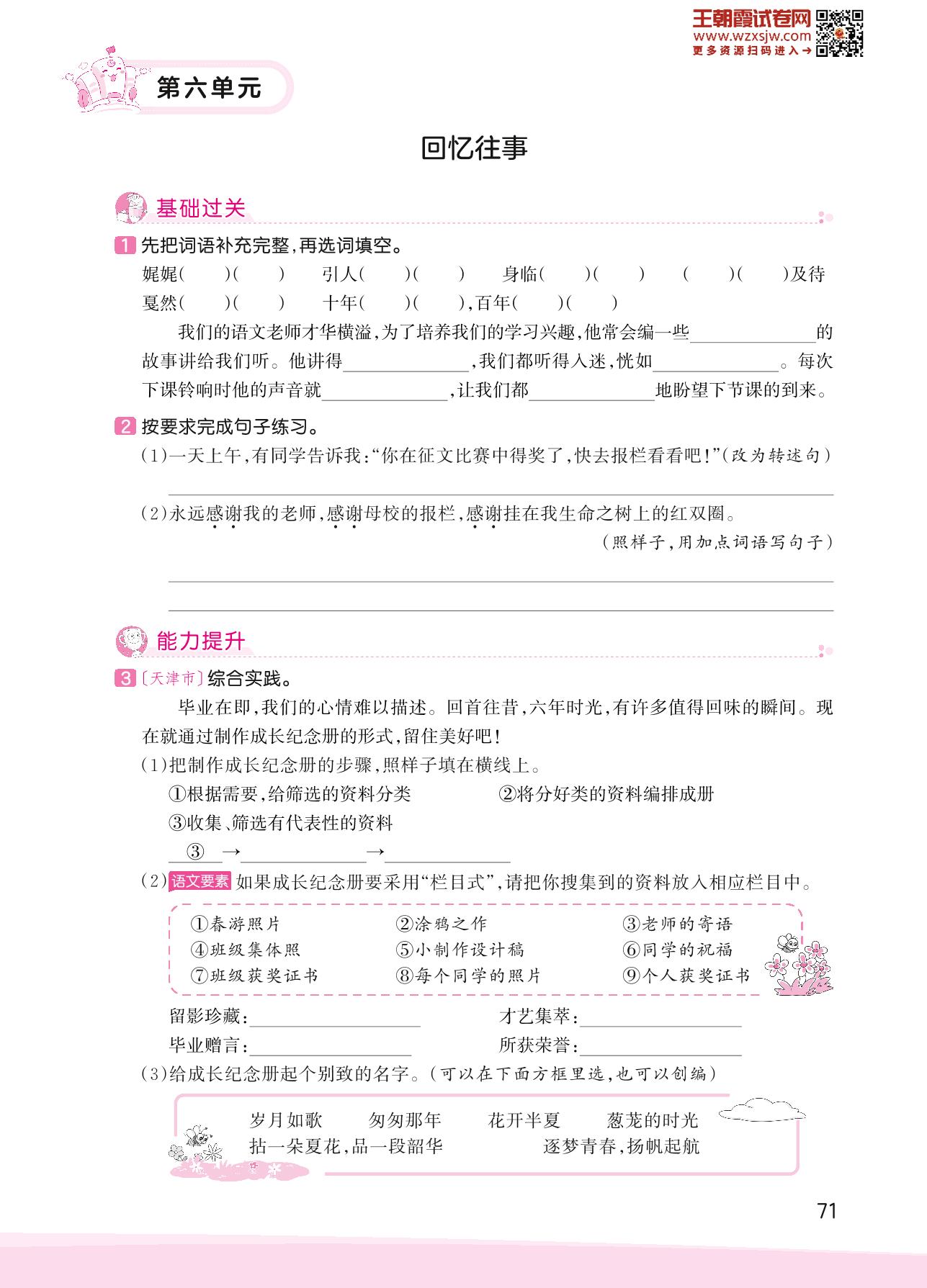 2023下册六年级语文人教版 第六单元 难忘小学生活——回忆往事_R230206165522166