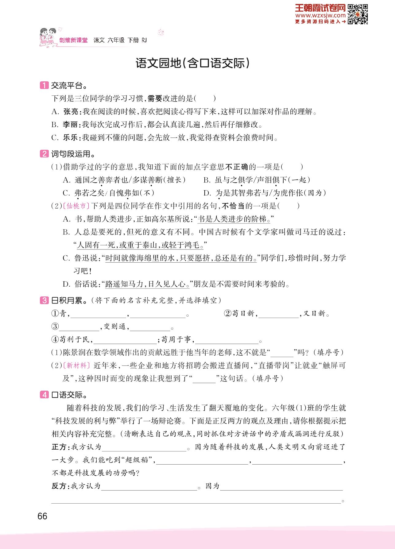 2023下册六年级语文人教版 第五单元 科学精神——语文园地[含口语交际]