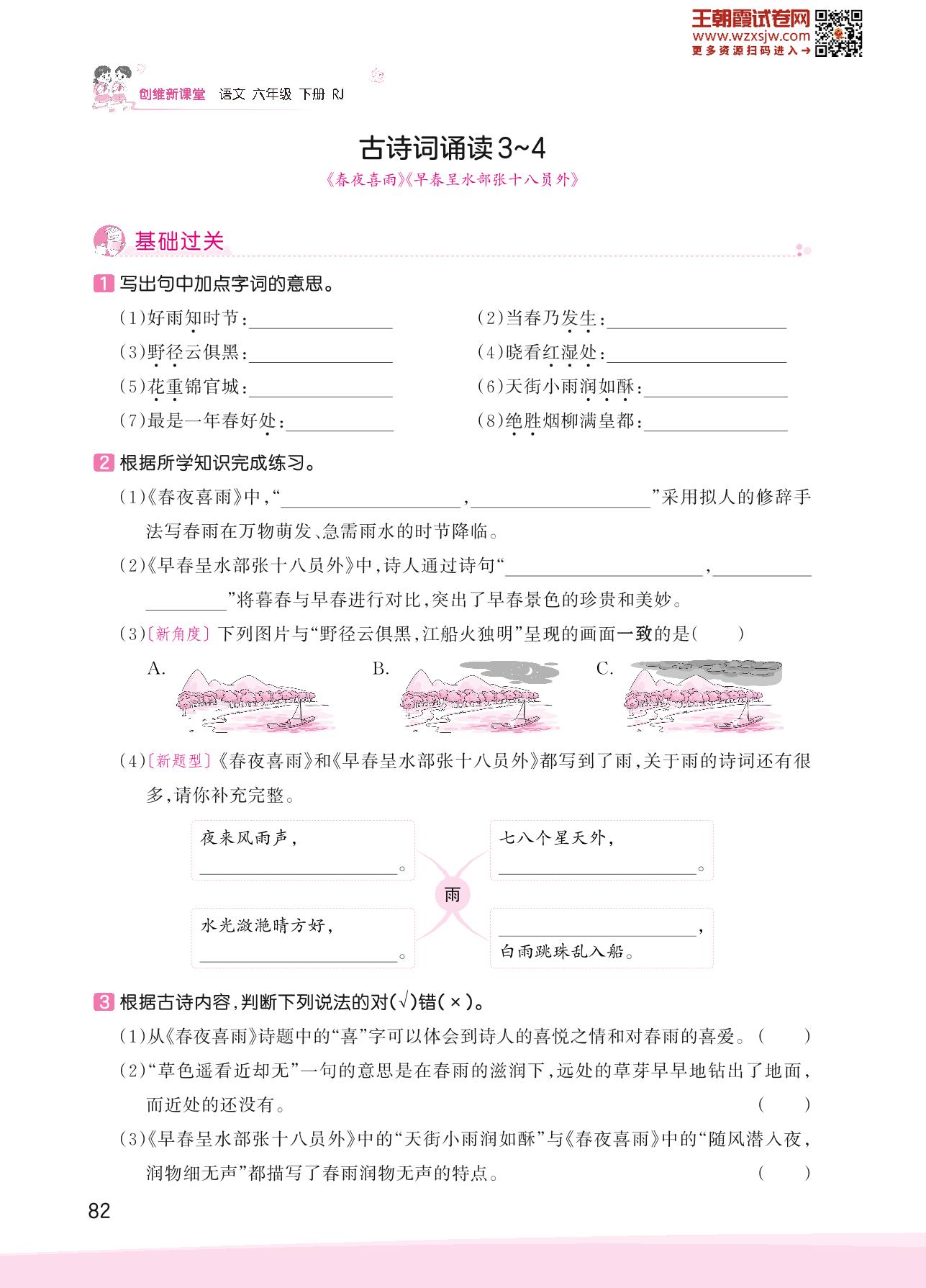2023下册六年级语文人教版 古诗词诵读——古诗词诵读3~4