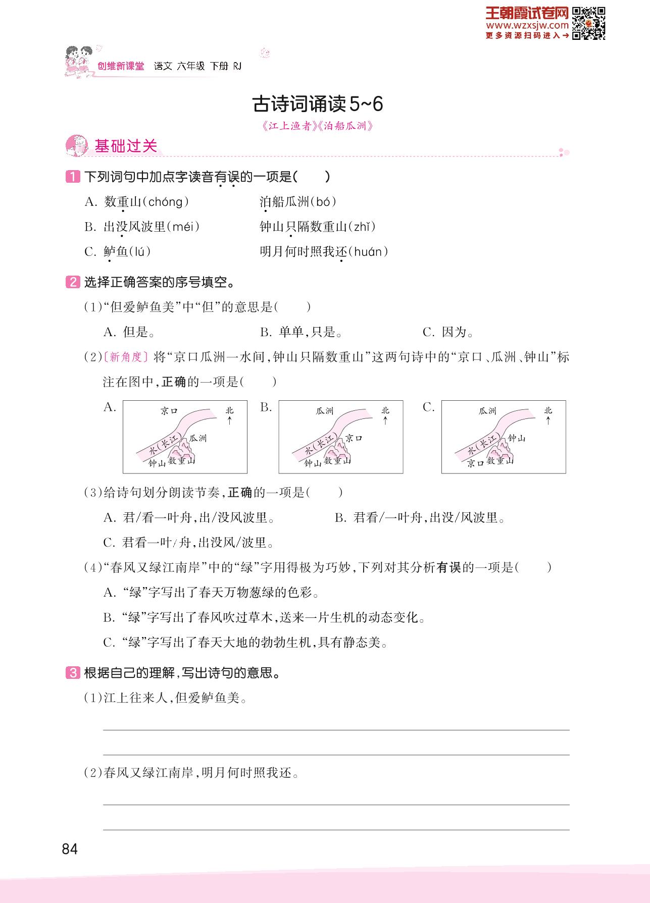 2023下册六年级语文人教版 古诗词诵读——古诗词诵读5~6