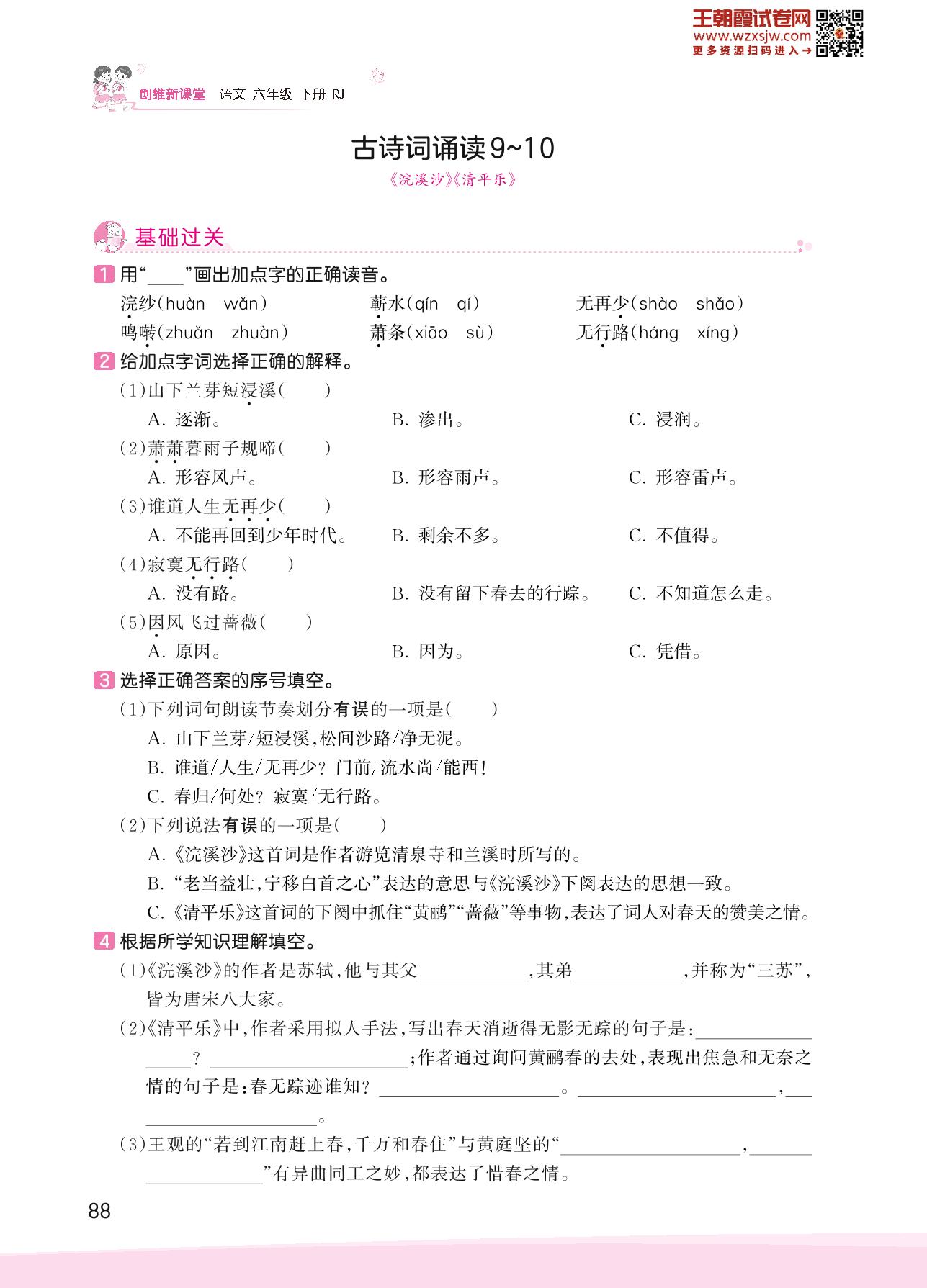 2023下册六年级语文人教版 古诗词诵读——古诗词诵读9~10