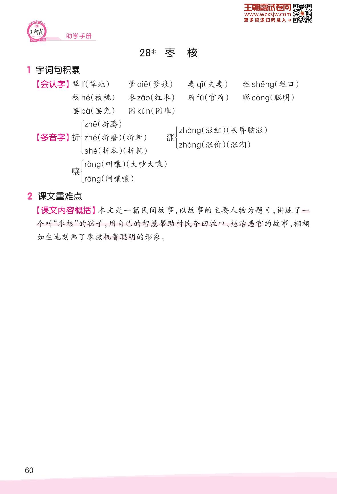 2023下册三年级语文人教版 助学手册 第八单元——28 枣核