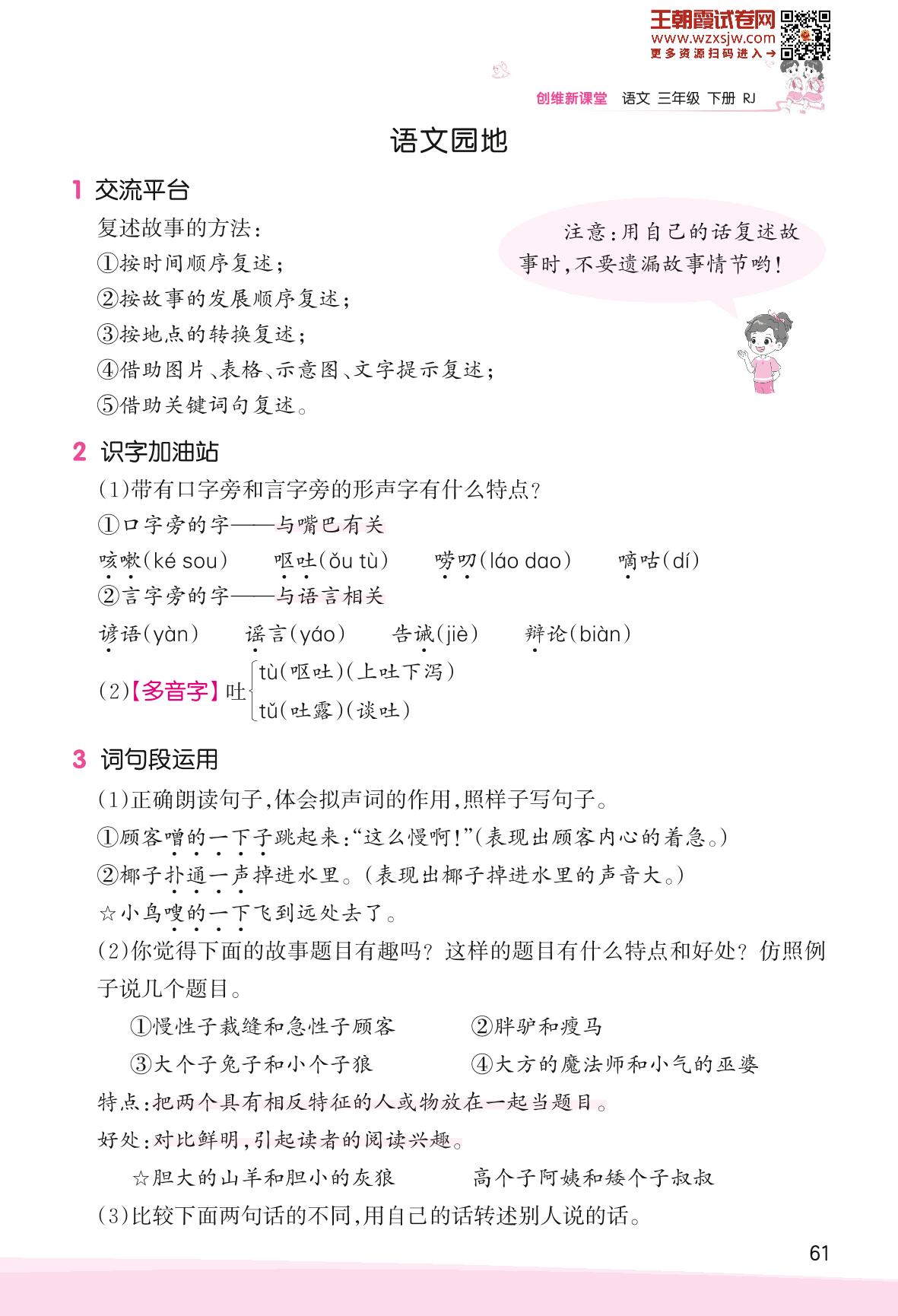 2023下册三年级语文人教版 助学手册 第八单元——语文园地