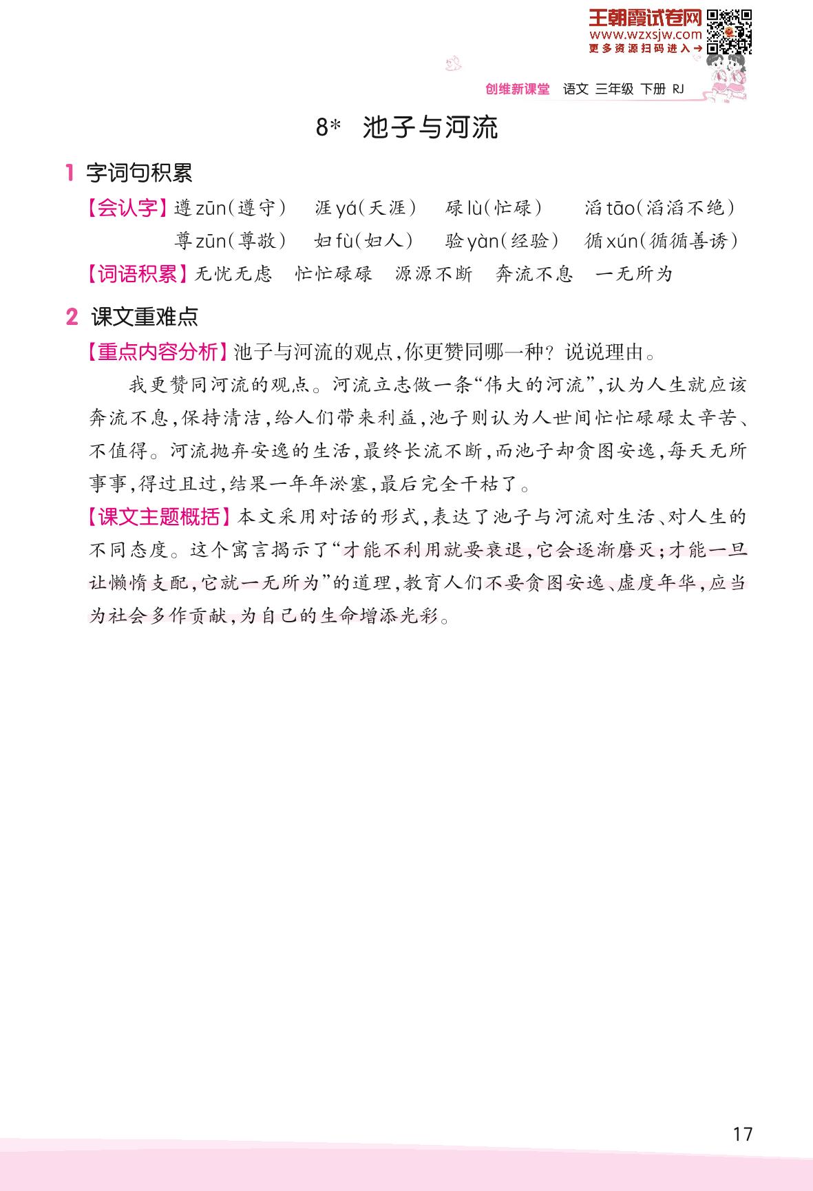 2023下册三年级语文人教版 助学手册 第二单元——8 池子与河流