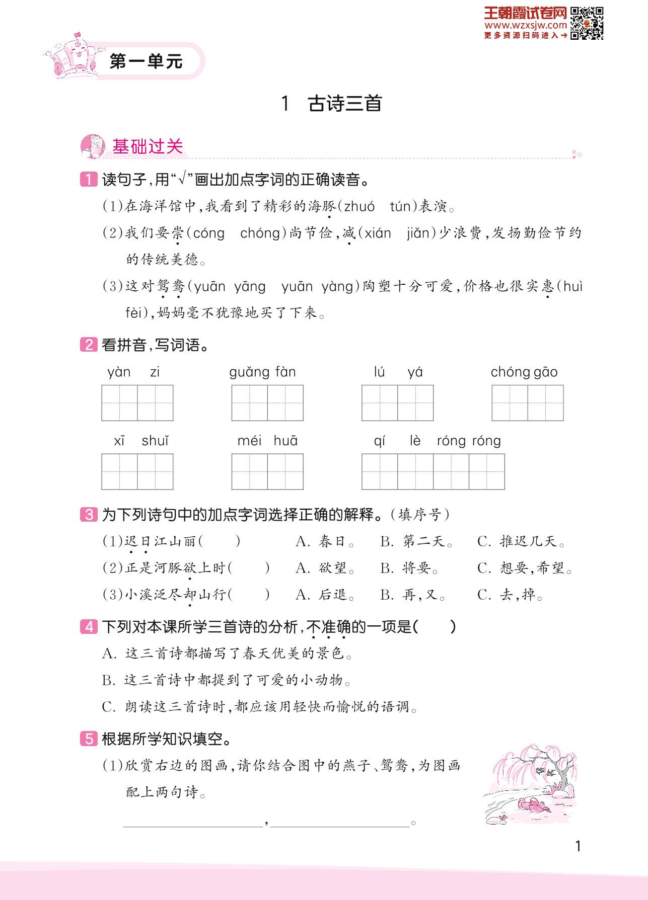 2023下册三年级语文人教版 第一单元 可爱的生灵——1 古诗三首