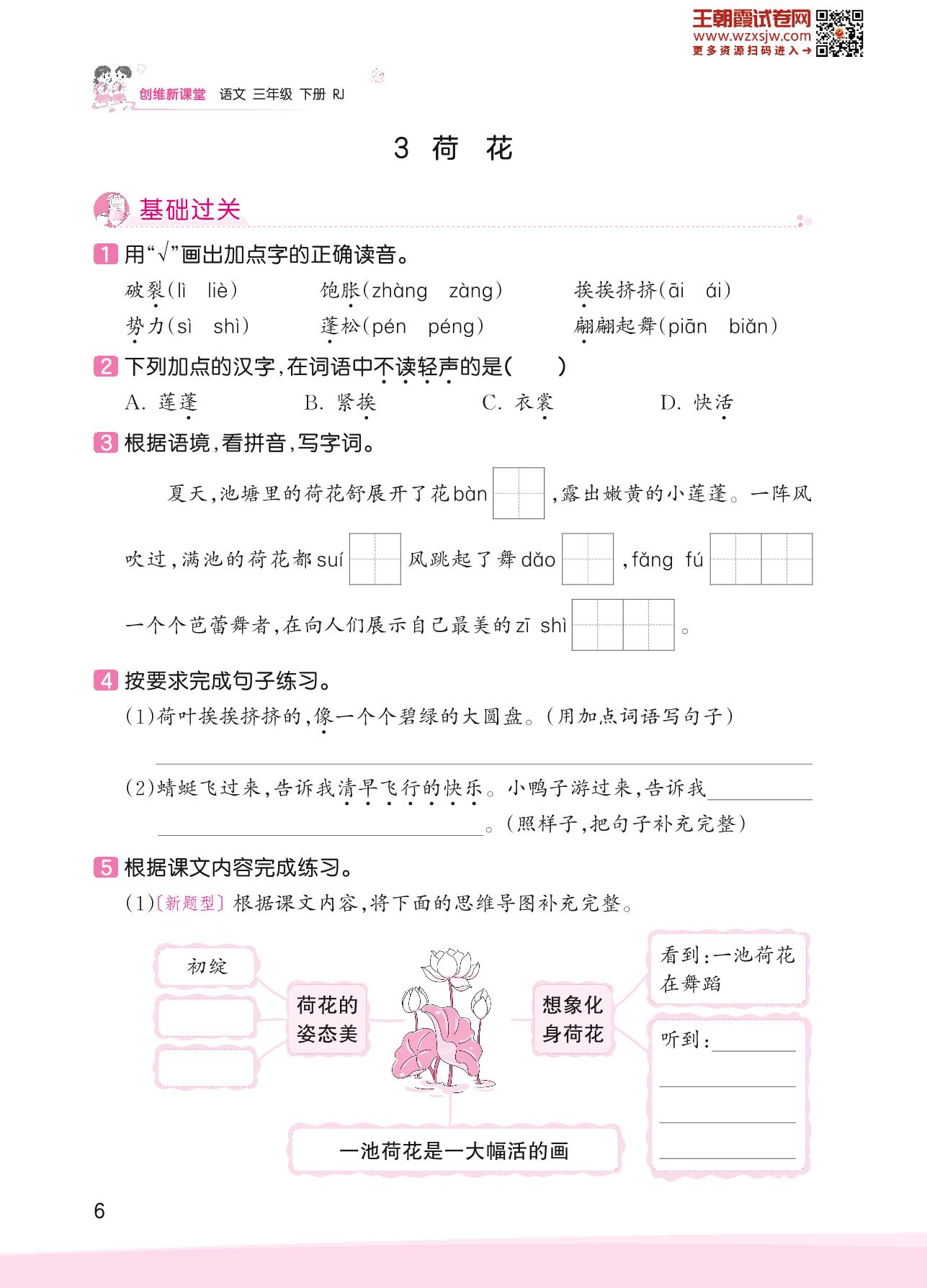 2023下册三年级语文人教版 第一单元 可爱的生灵——3 荷花