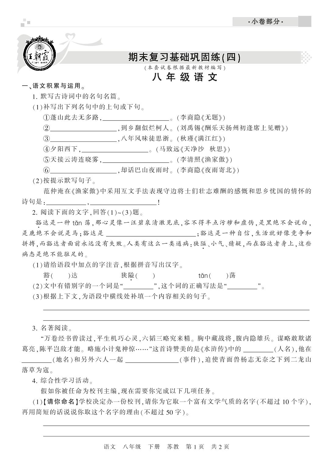 王朝霞期末小卷期末复习基础巩固练(四)八年级下册语文(苏教版)【0】