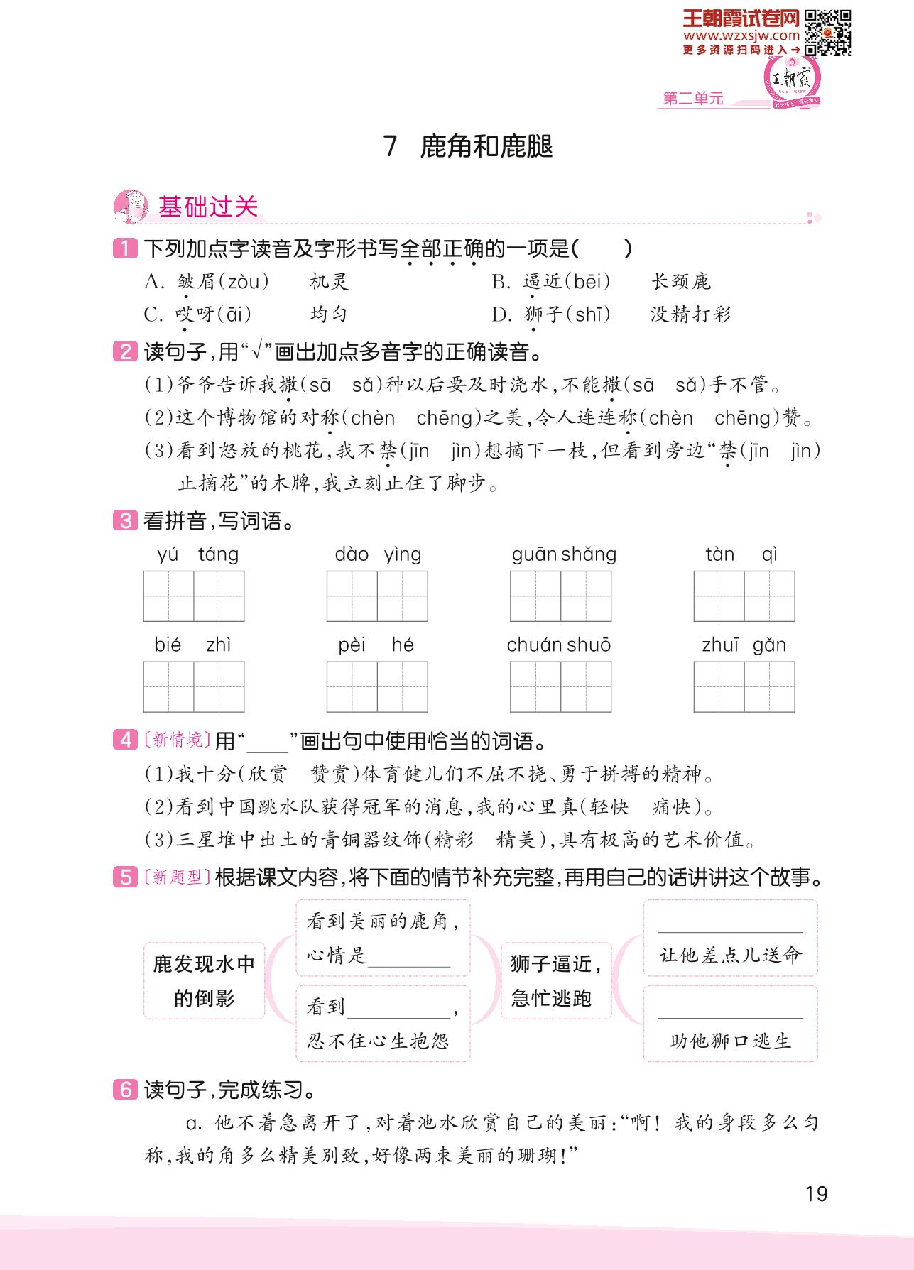2023下册三年级语文人教版 第二单元 寓言故事——7 鹿角和鹿腿