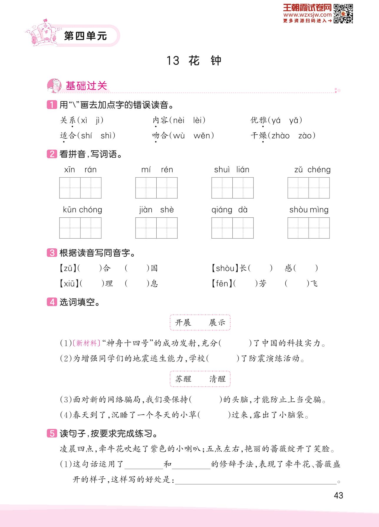 2023下册三年级语文人教版 第四单元 观察与发现——13 花钟