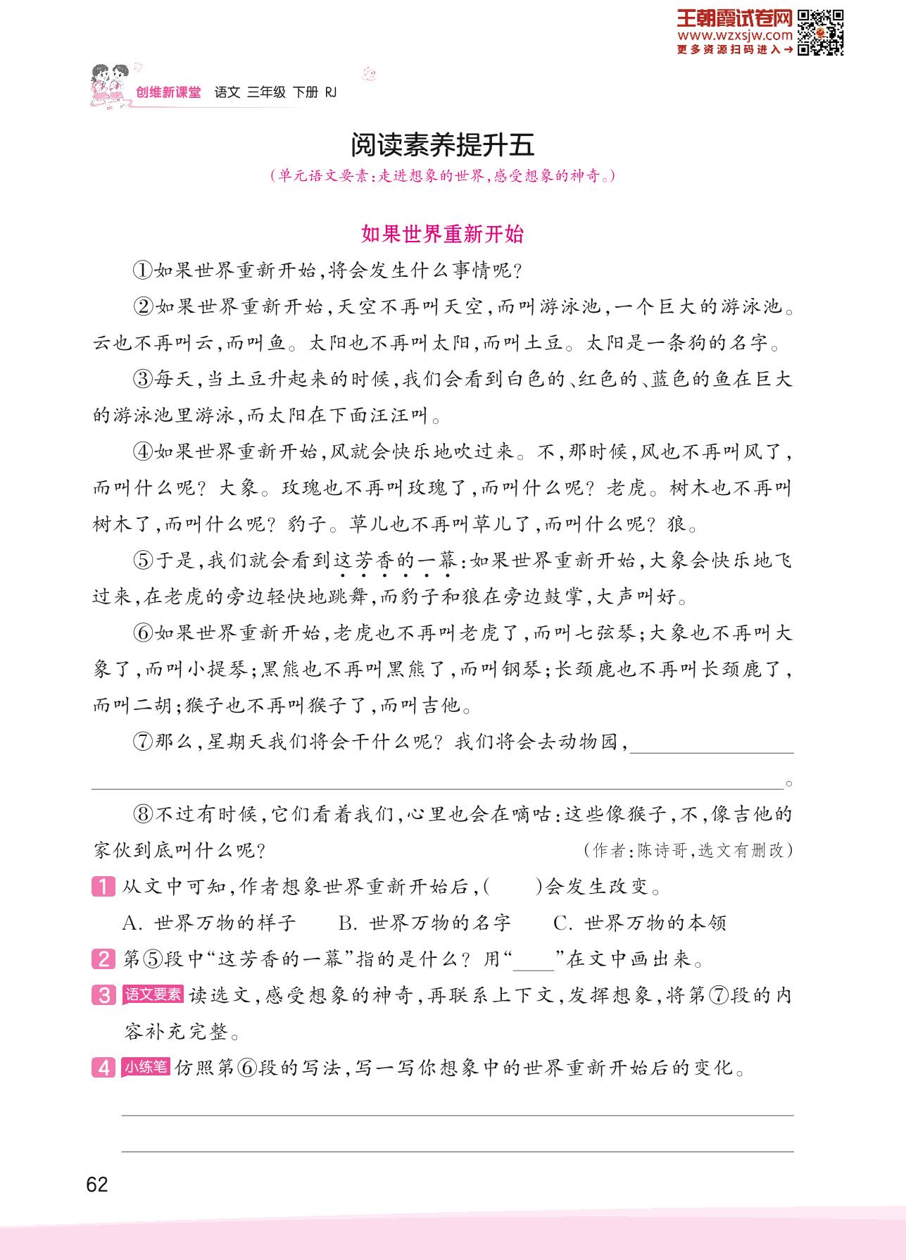 2023下册三年级语文人教版 第五单元 大胆想象——阅读素养提升五
