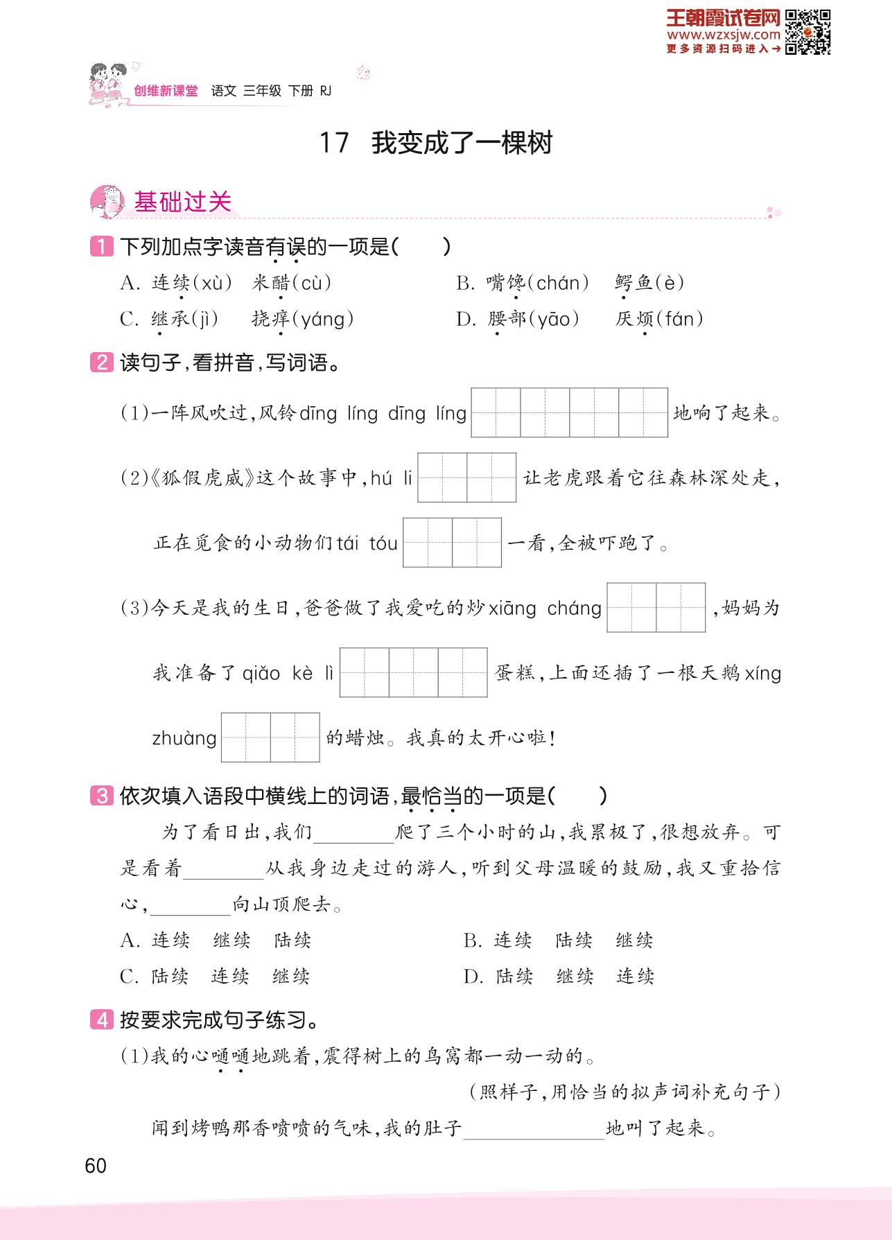 2023下册三年级语文人教版 第五单元 大胆想象——17 我变成了一棵树