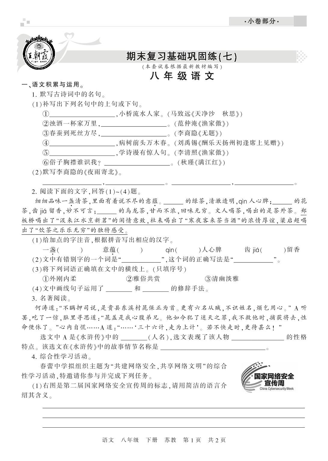 王朝霞期末小卷期末复习基础巩固练(七)八年级下册语文(苏教版)【0】
