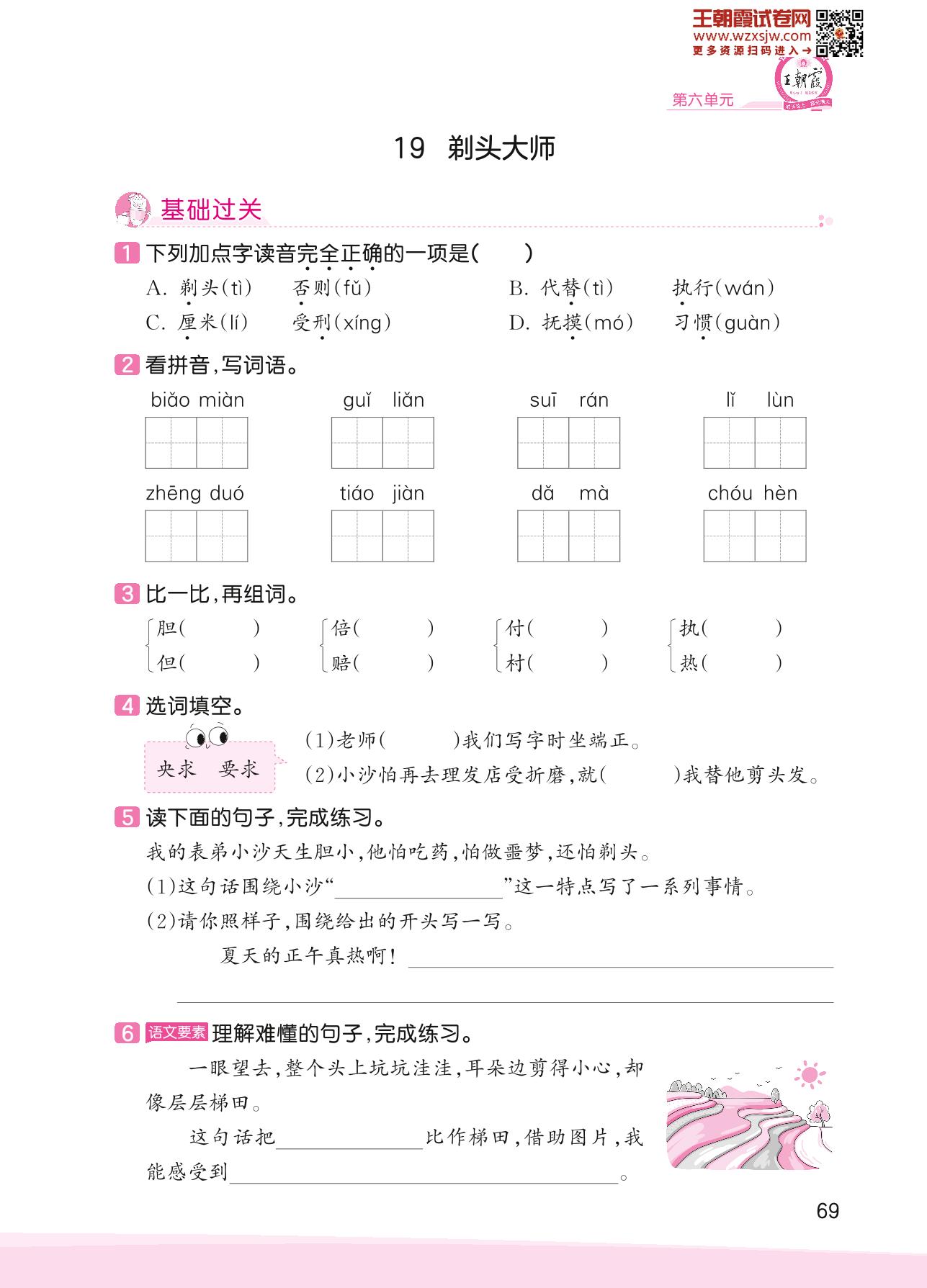 2023下册三年级语文人教版 第六单元 多彩童年——19 剃头大师