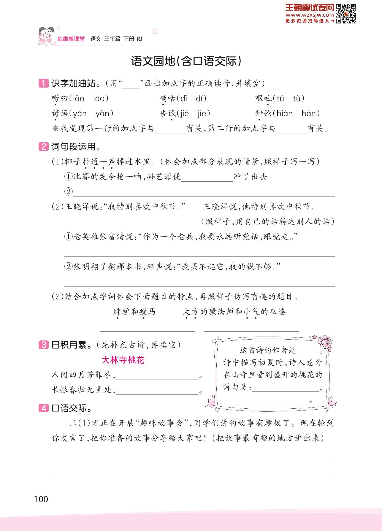 三年级语文人教版下册课时作业