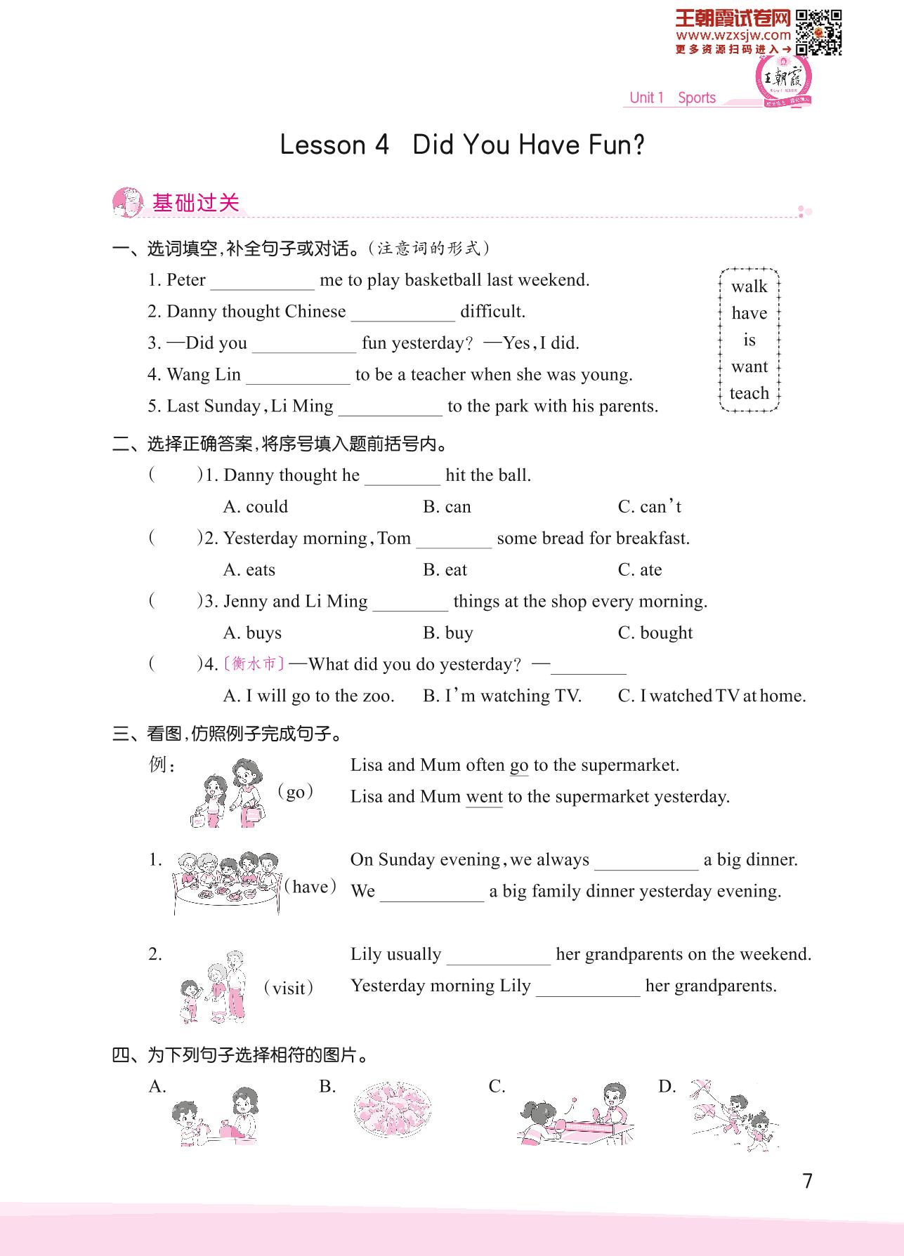 2023下册六年级英语冀教版 Unit 1—Lesson 4 Did You Have Fun?