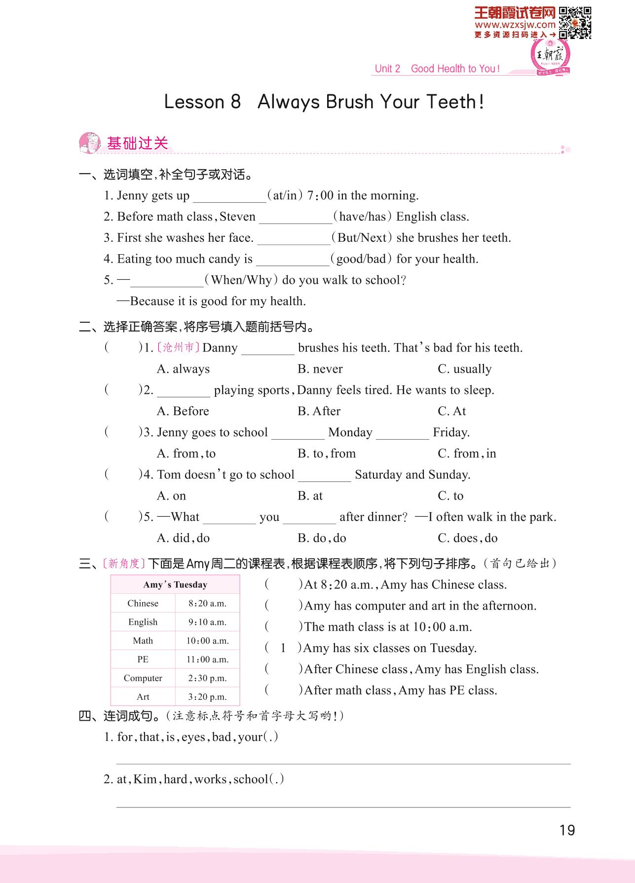 2023下册六年级英语冀教版 Unit 2—Lesson 8 Always Brush Your Teeth!