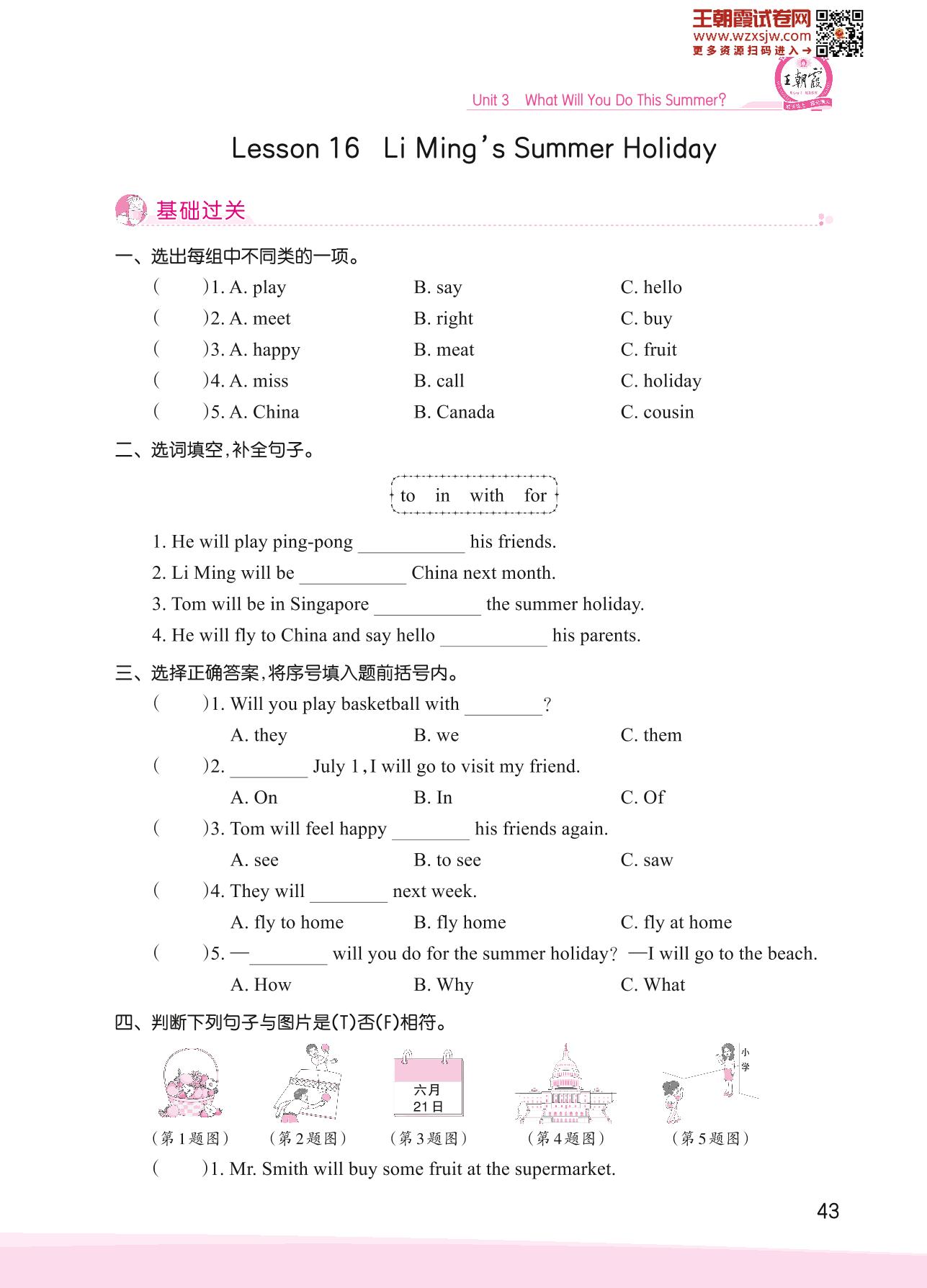 2023下册六年级英语冀教版 Unit 3—Lesson 16 Li Ming’s Summer Holiday