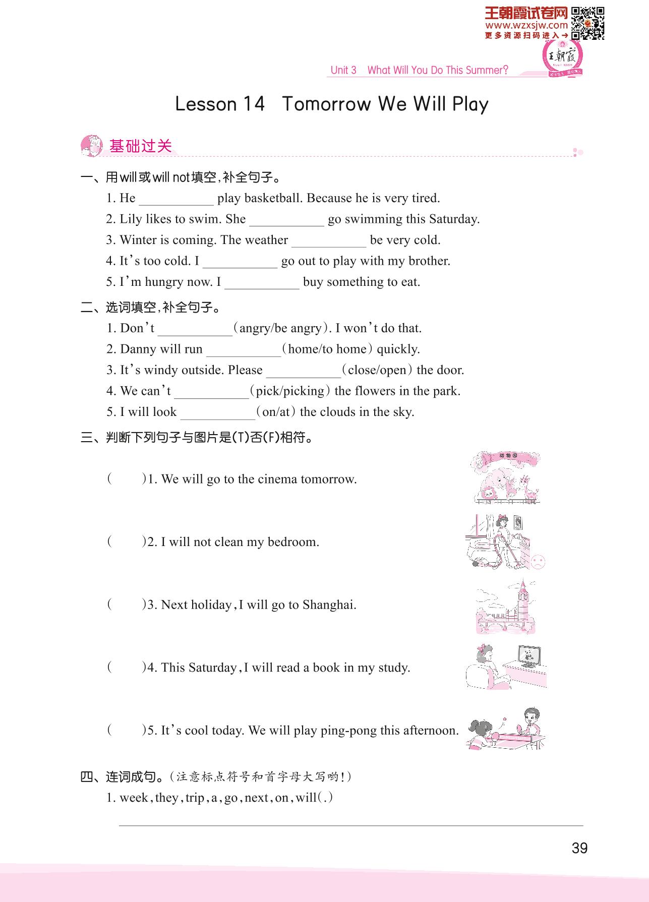 2023下册六年级英语冀教版 Unit 3—Lesson 14 Tomorrow We Will Play