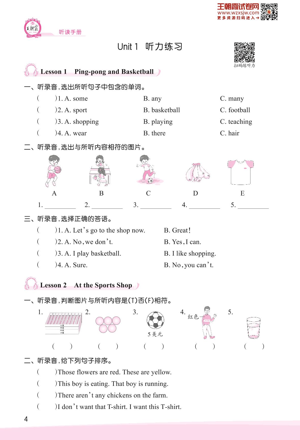2023下册六年级英语冀教版 Unit 1 Sports—Lesson 1-5听力练习
