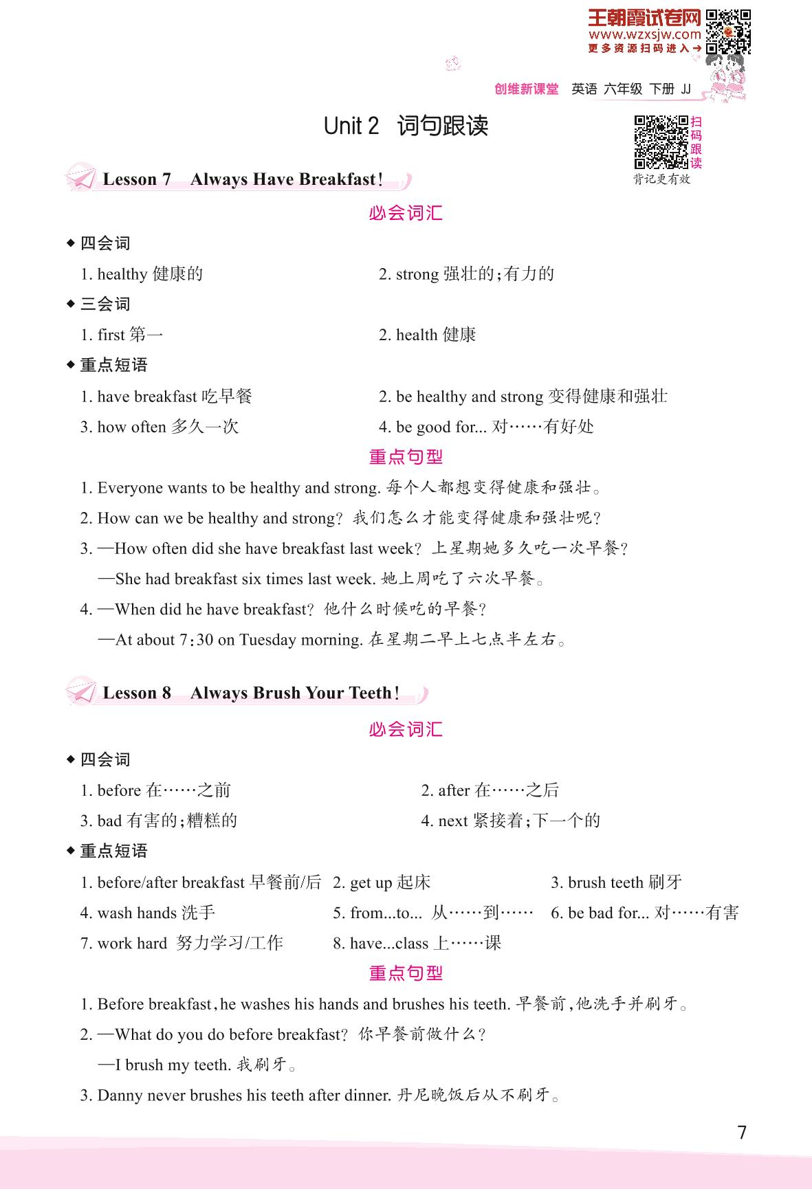 2023下册六年级英语冀教版 Unit 2 Good Health to You!—词句跟读