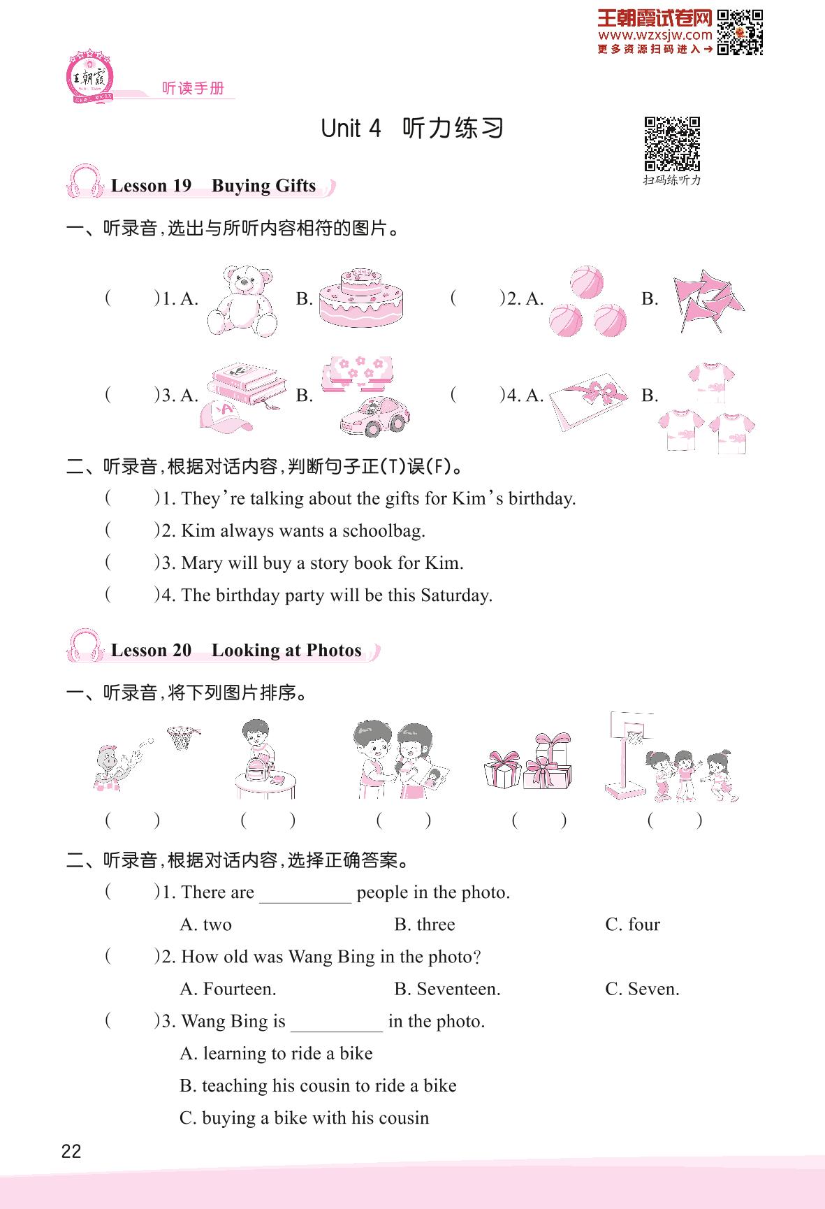 2023下册六年级英语冀教版 Unit 4 Li Ming Comes Home—Lesson 19-23听力练习