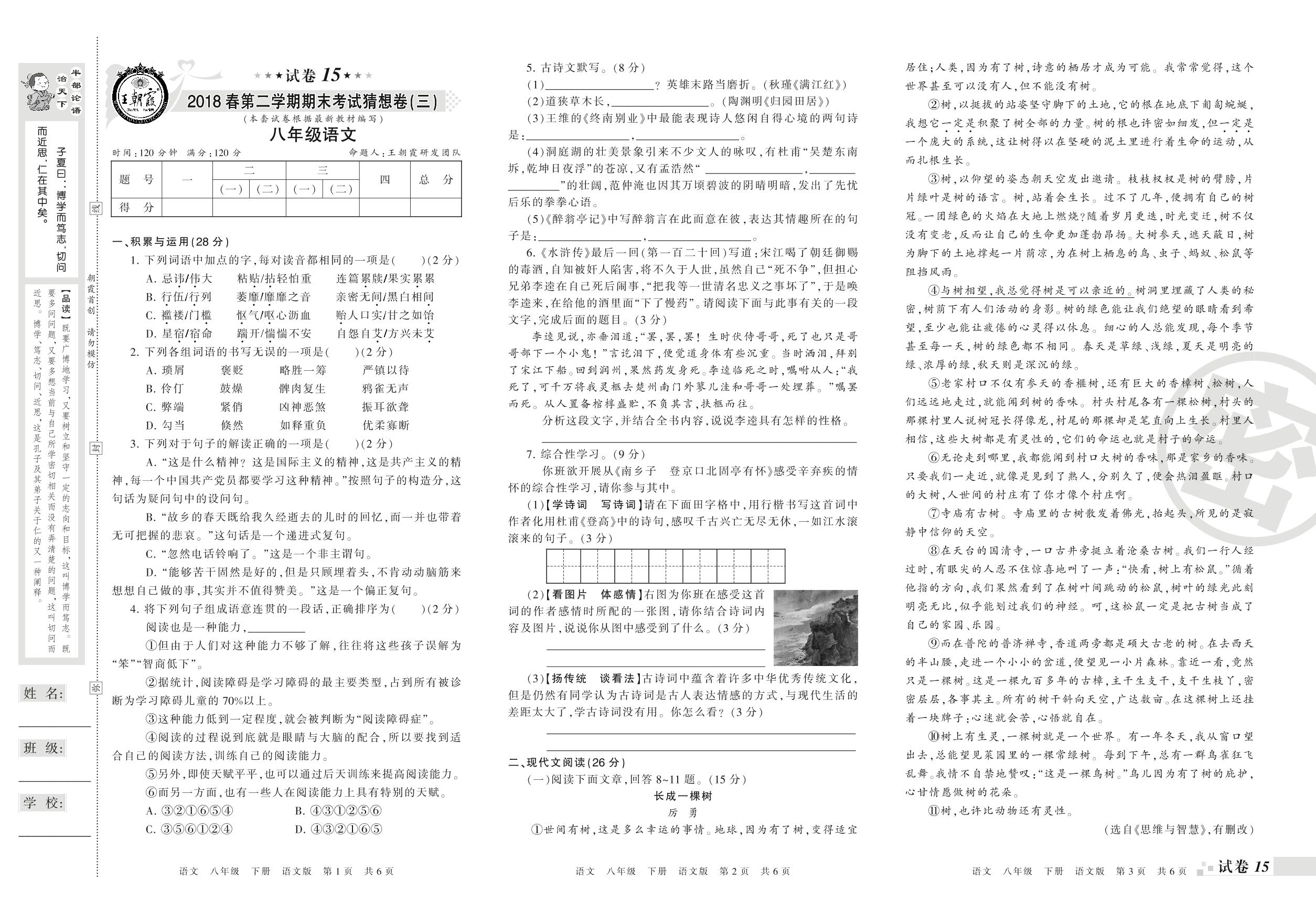 王朝霞期末猜想卷(三)八年级下册语文(语文版)_R210802192142【15】