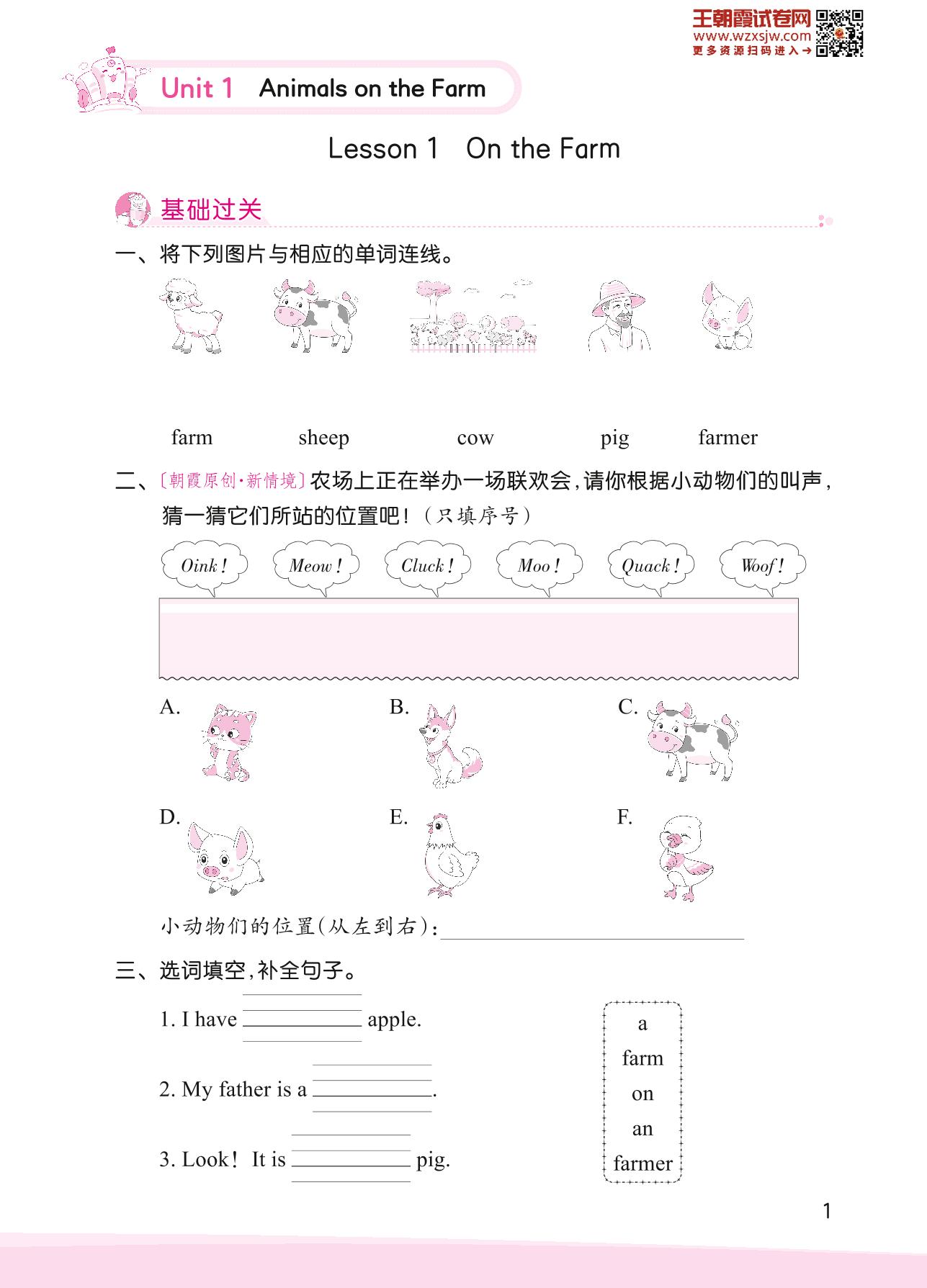 2023下册三年级英语冀教版 Unit 1—Lesson 1 On the Farm