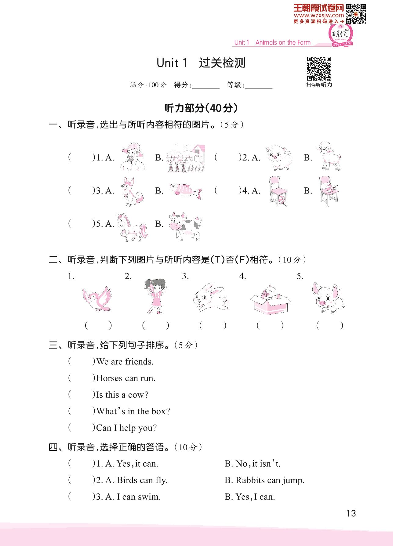 2023下册三年级英语冀教版 Unit 1 过关检测