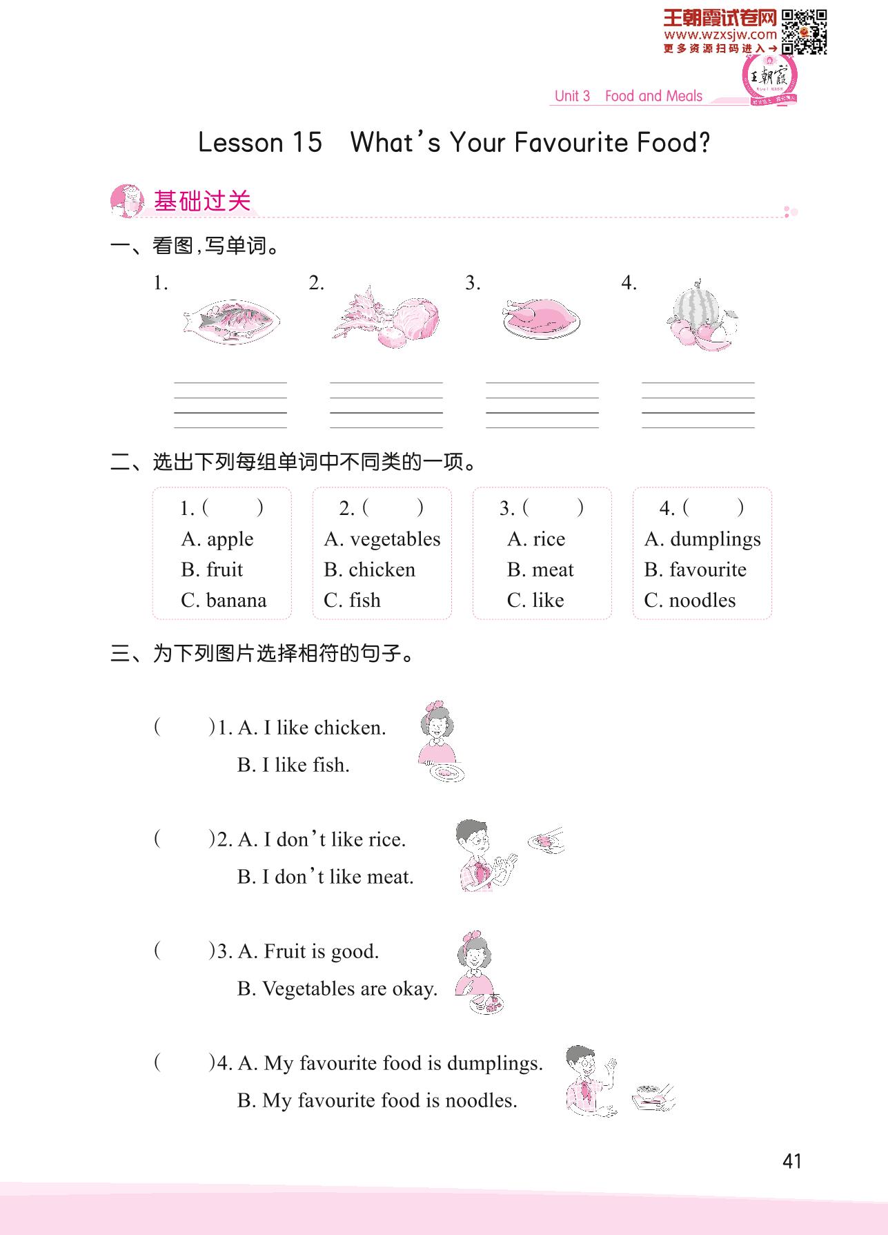 2023下册三年级英语冀教版 Unit 3—Lesson 15 What’s Your Favourite Food?