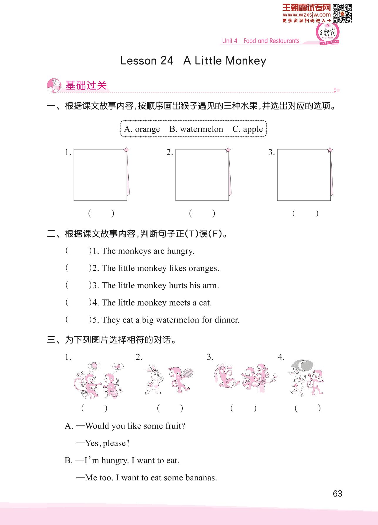 2023下册三年级英语冀教版 Unit 4—Lesson 24 A Little Monkey
