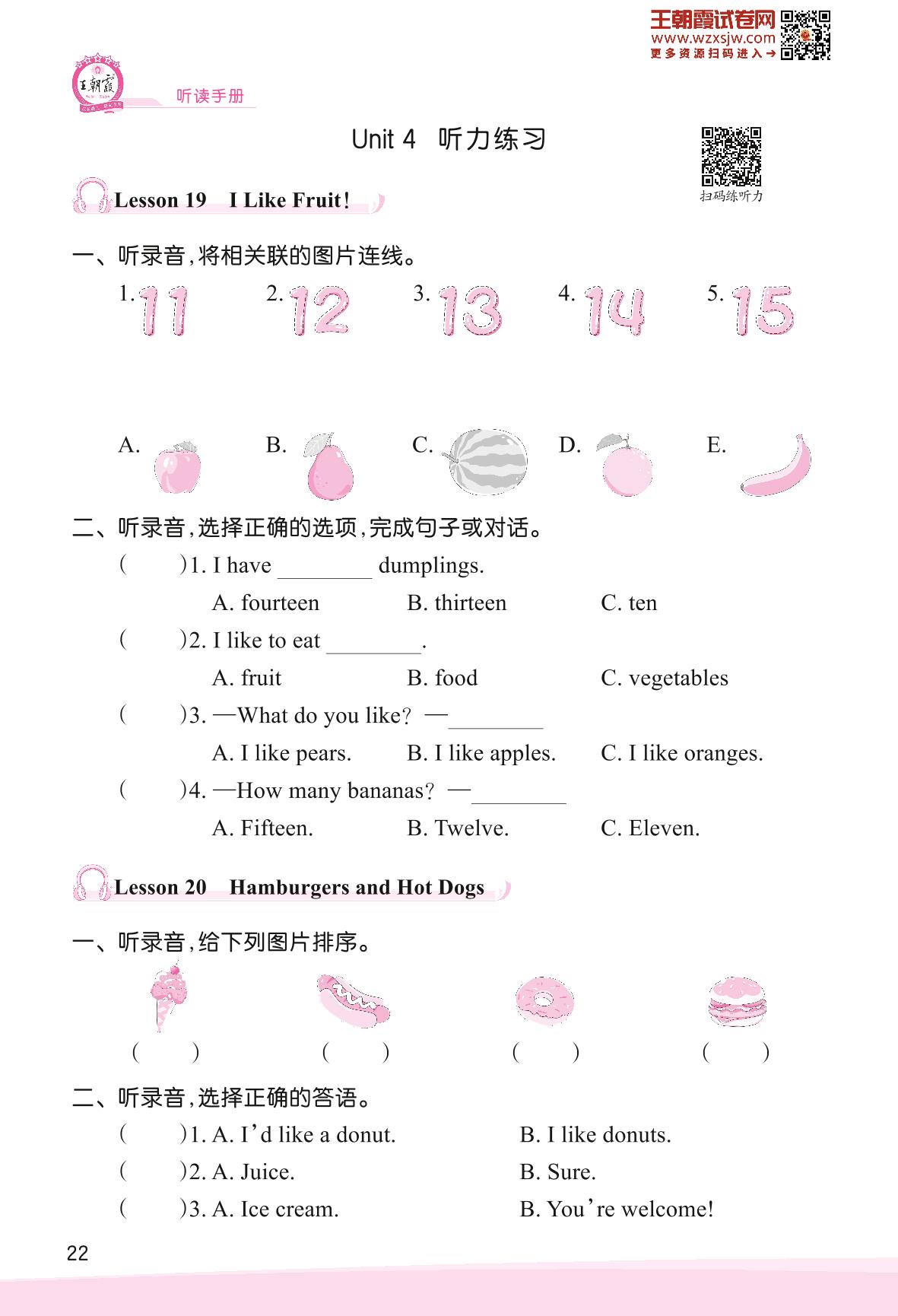 2023下册三年级英语冀教版 Unit 4 Food and Restaurants—Lesson 19-23听力练习
