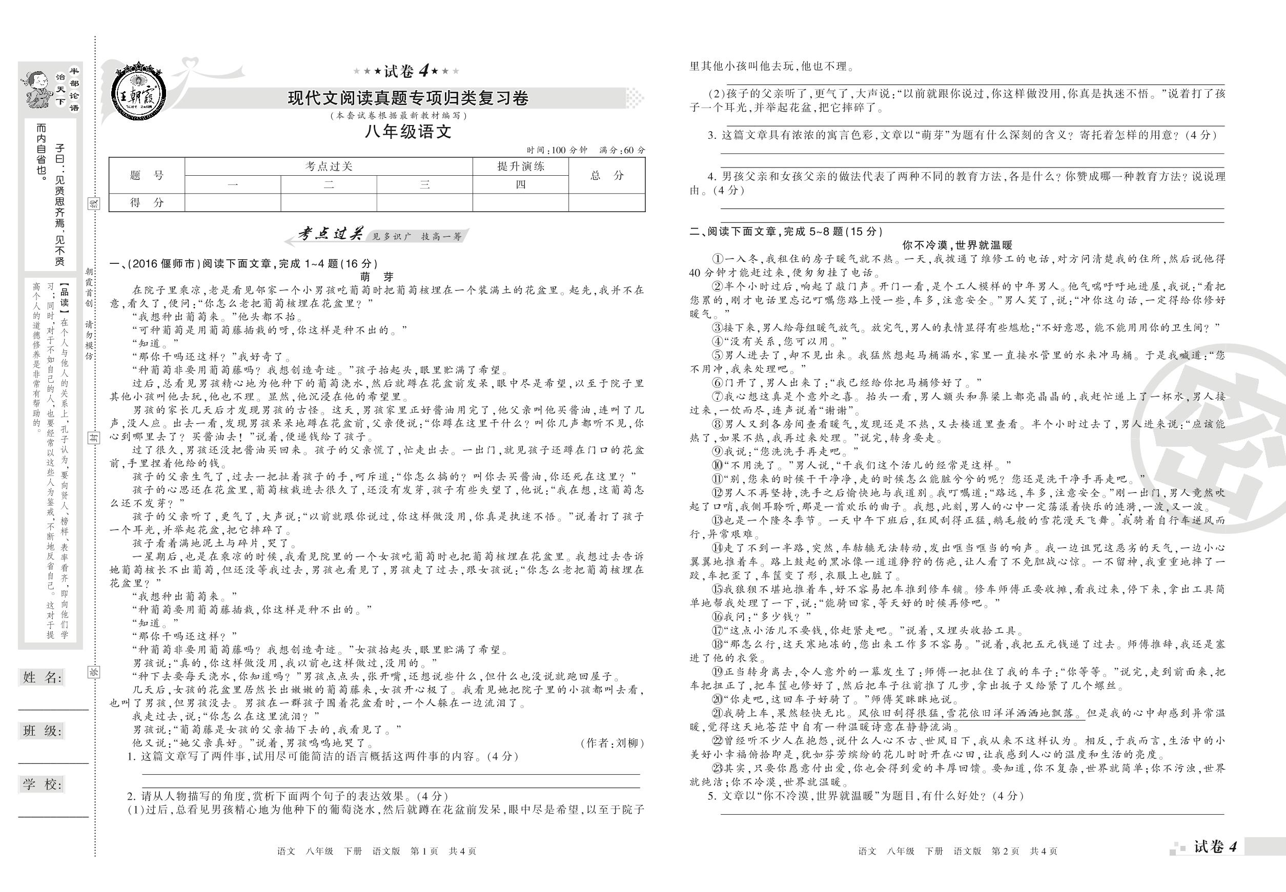 王朝霞期末专项卷——现代文阅读真题专项归类复习卷八年级下册语文(语文版)_R210802192215【4】