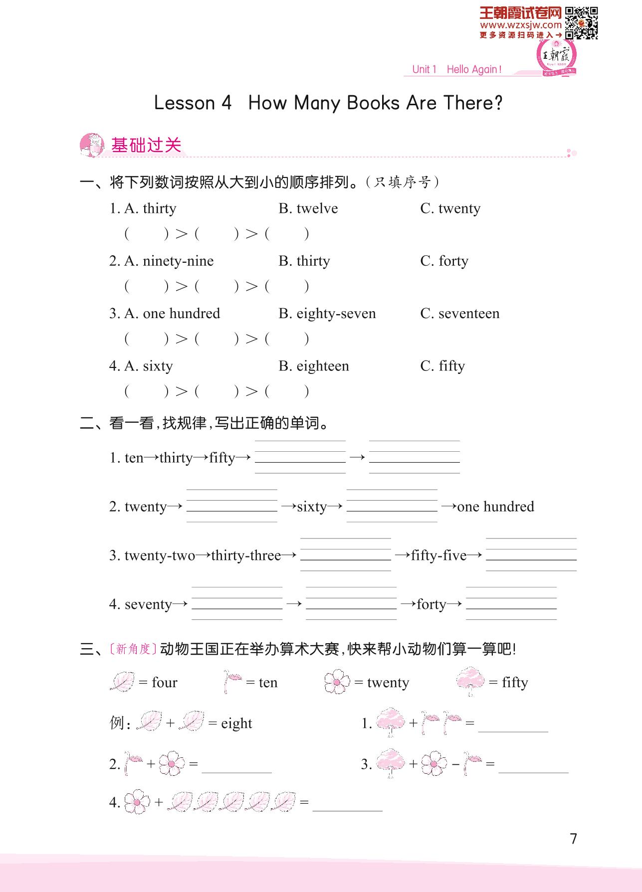 2023下册四年级英语冀教版 Unit 1—Lesson 4 How Many Books Are There?