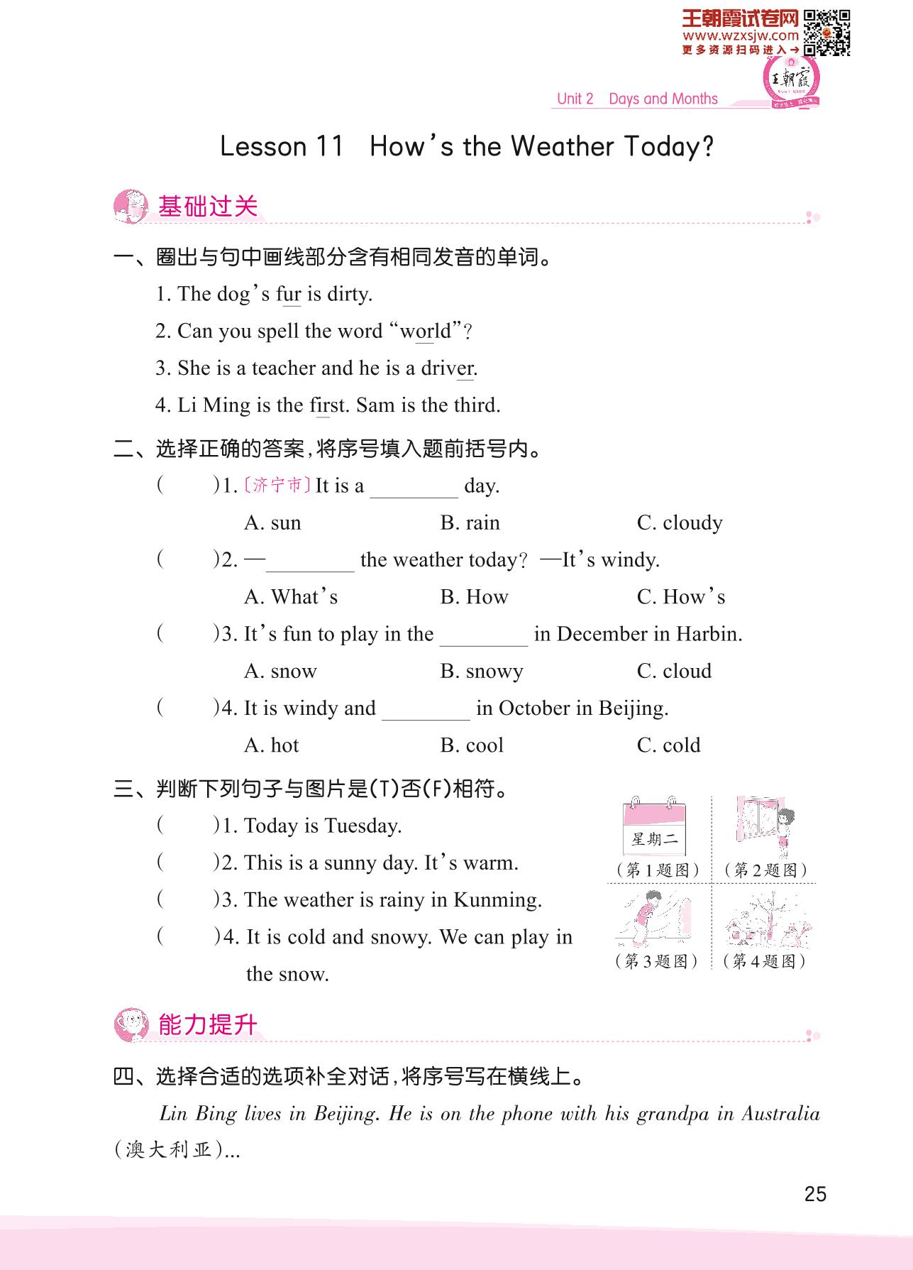 2023下册四年级英语冀教版 Unit 2—Lesson 11 How’s the Weather Today?